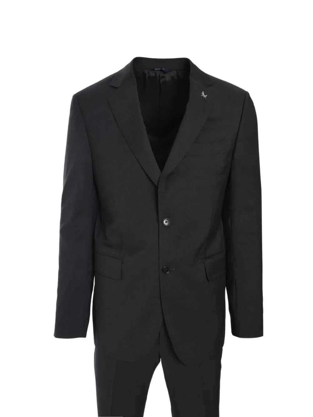 Crafted for the discerning gentleman, the Tombolini Virgin Wool Suit in dark grey blends timeless elegance with fine Italian tailoring. Made in Italy from 100% pure virgin wool, this new-season piece offers a lightweight yet structured fit, perfect for formal and business occasions in the Saudi climate. The classic silhouette features a front button fastening, a chest welt pocket, two front flap pockets, and English rear vents that provide both style and comfort.