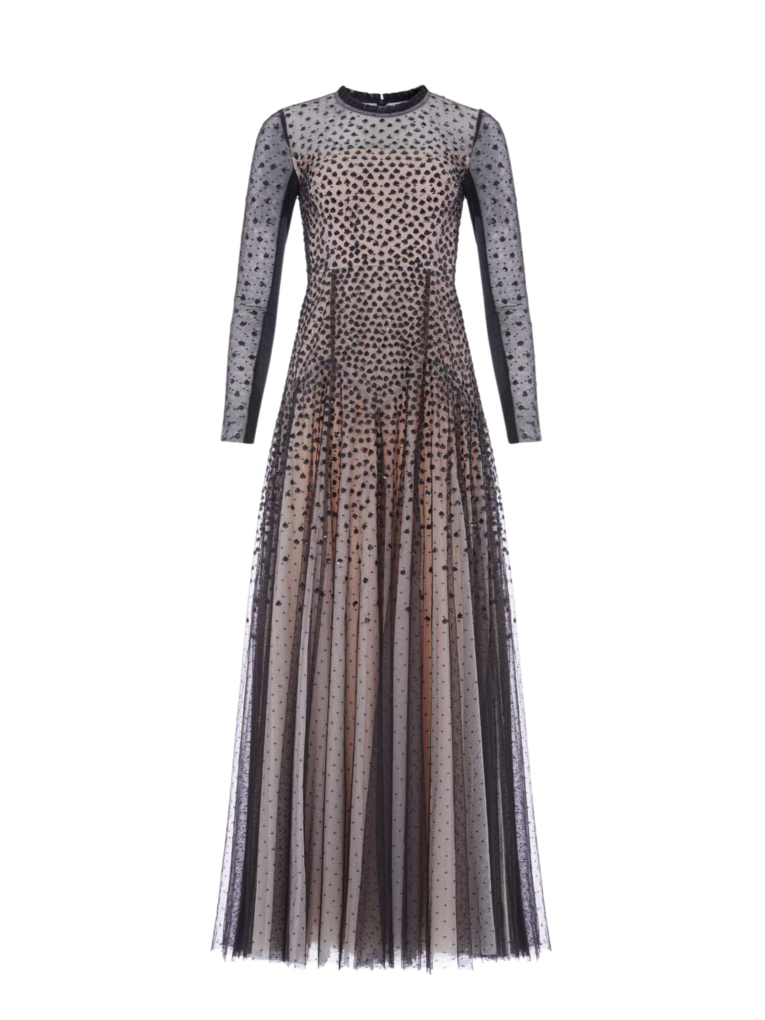 SEQUIN CASCADE ROUND NECK GOWN