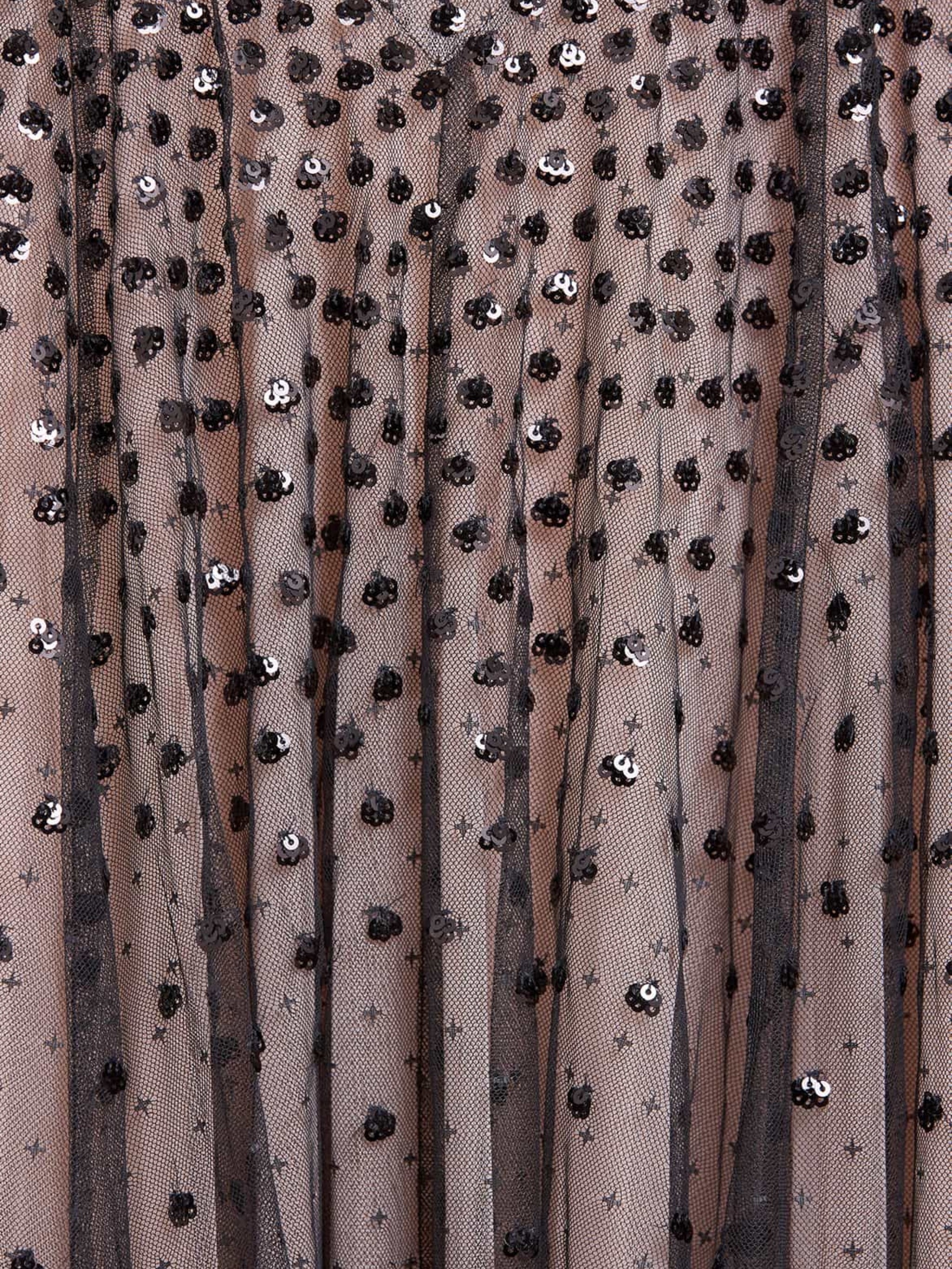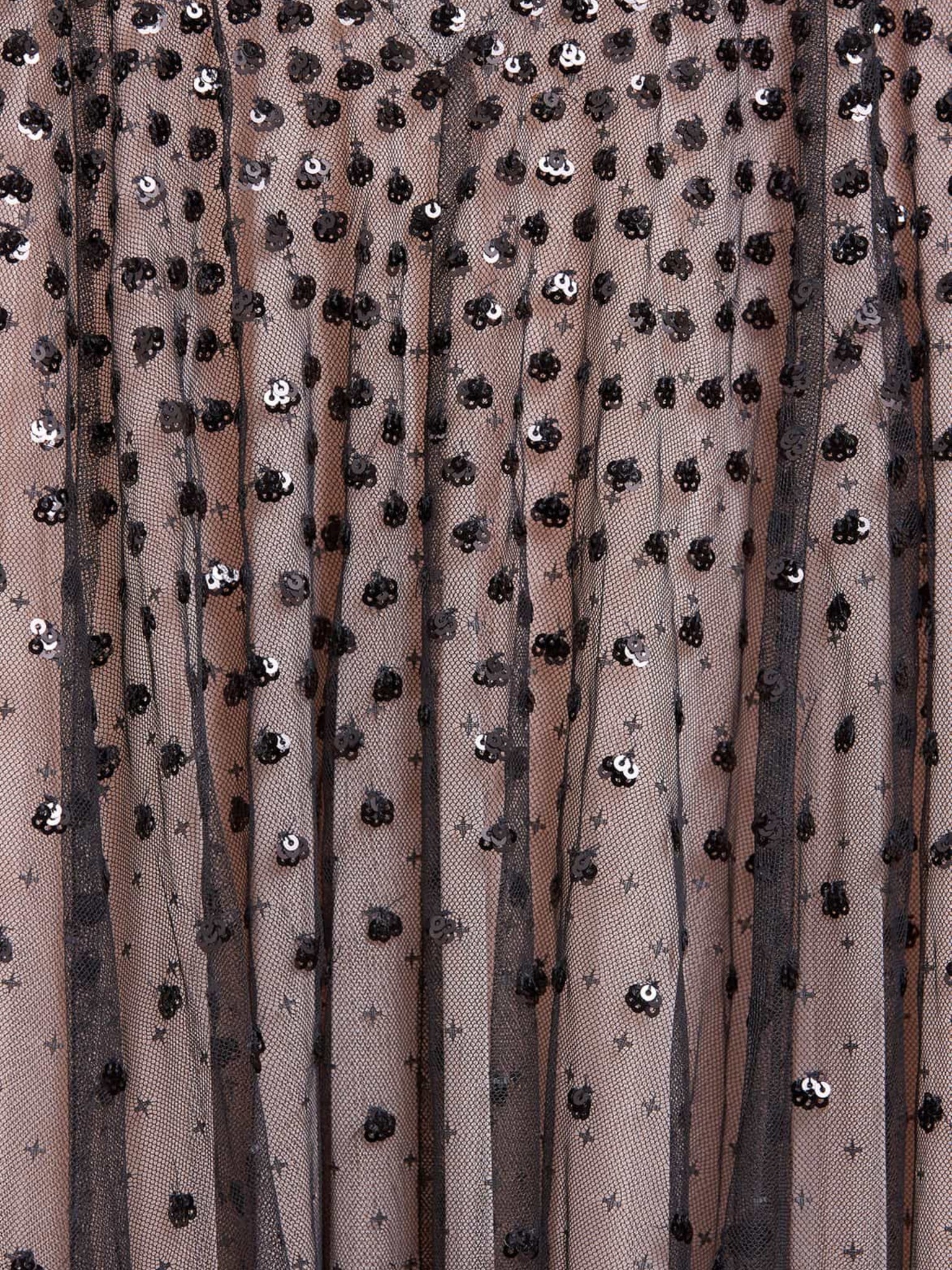 Signature all-over sequin embroidery in graphite and opal tones