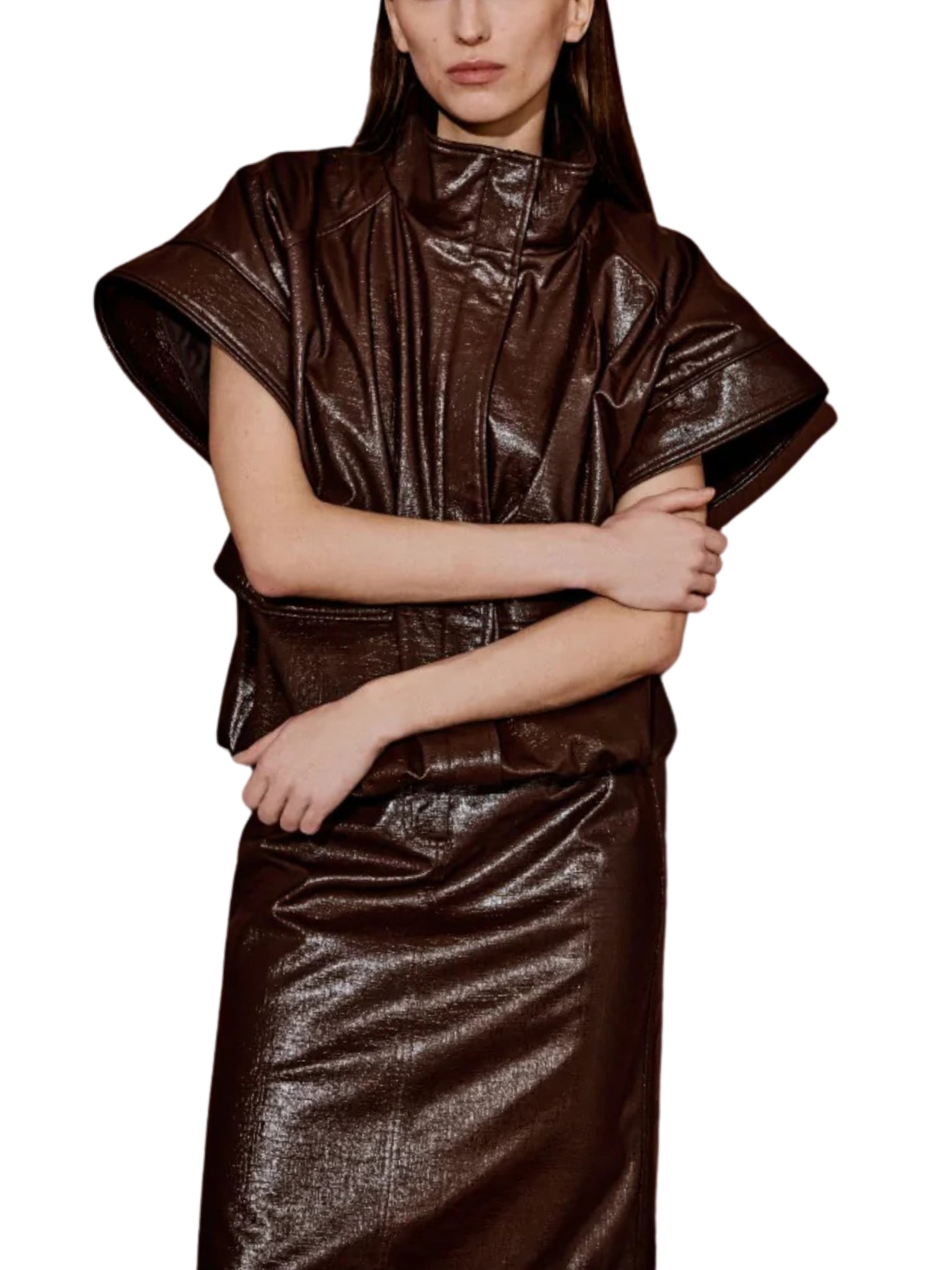 BROWN VEGAN LEATHER JACKET-VEST