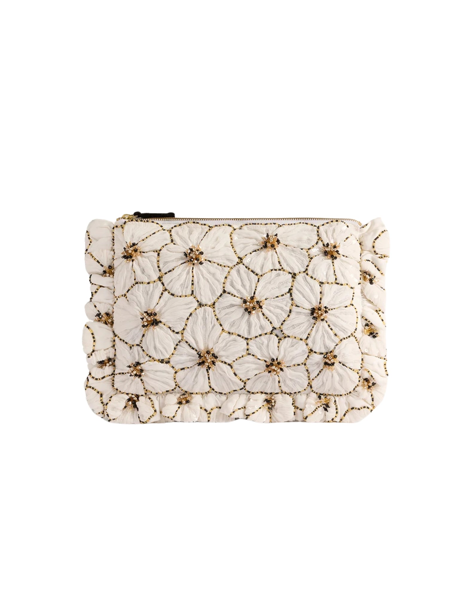 Elegant cream-toned hand pochette embellished with intricate embroidery