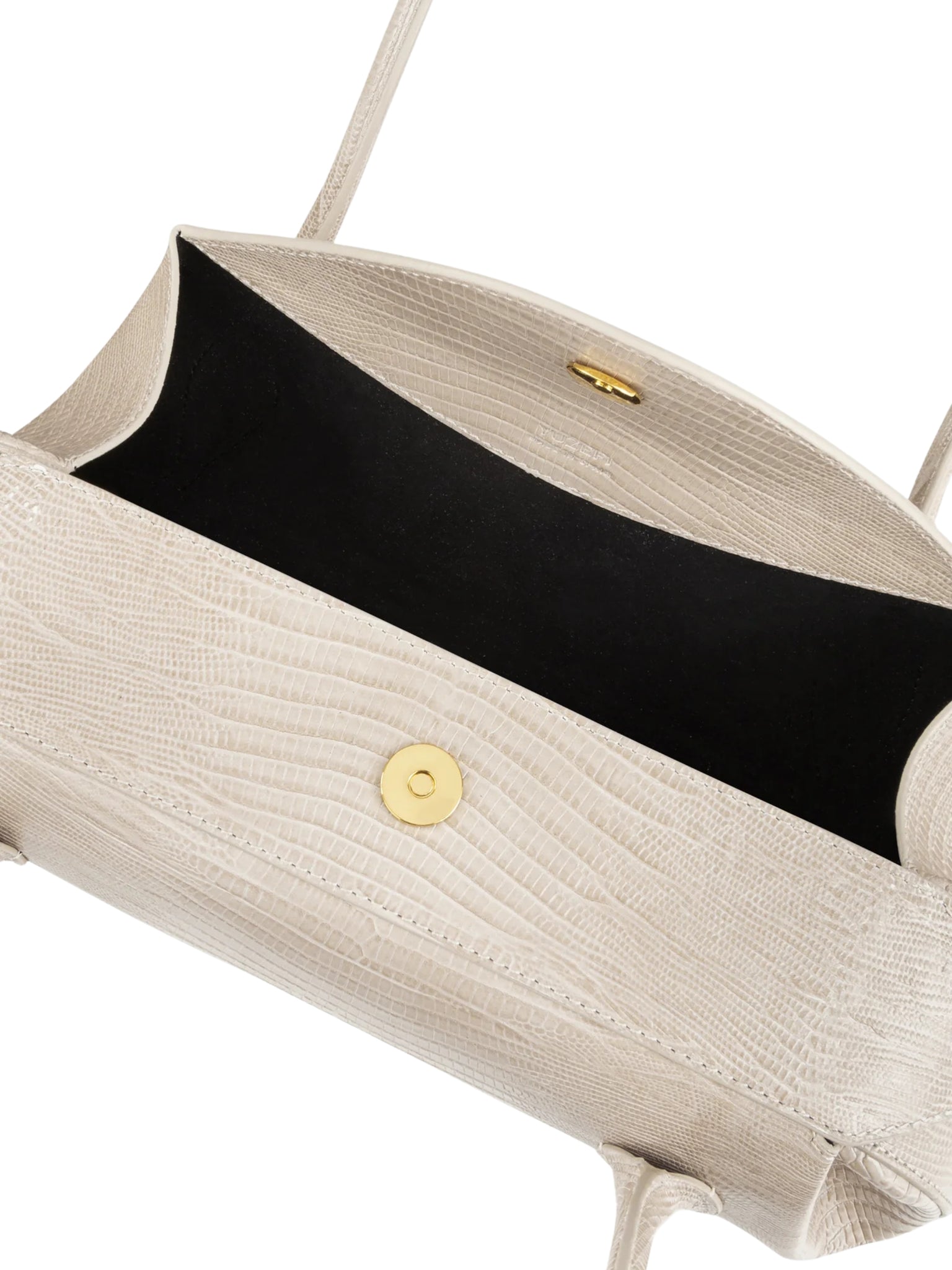 Exterior: 100% Embossed Lizard Cowhide Leather (Certified LWG Italian Leather)