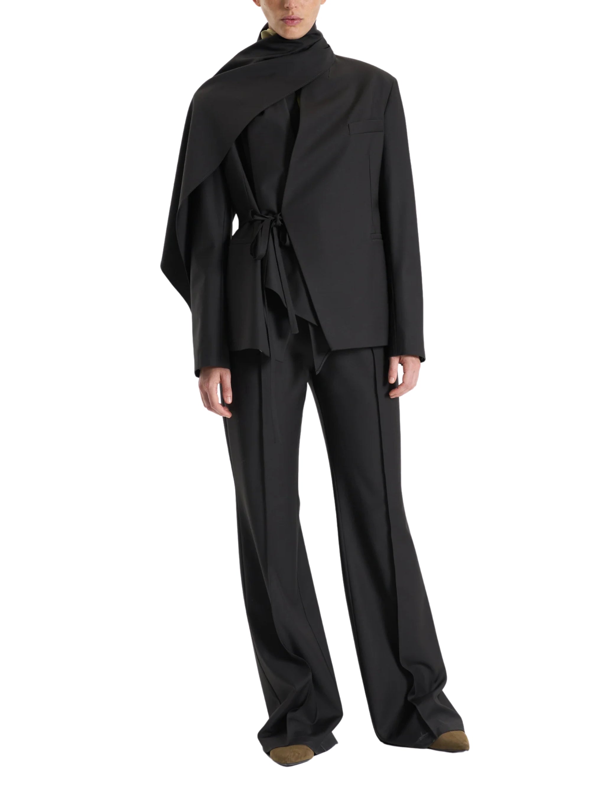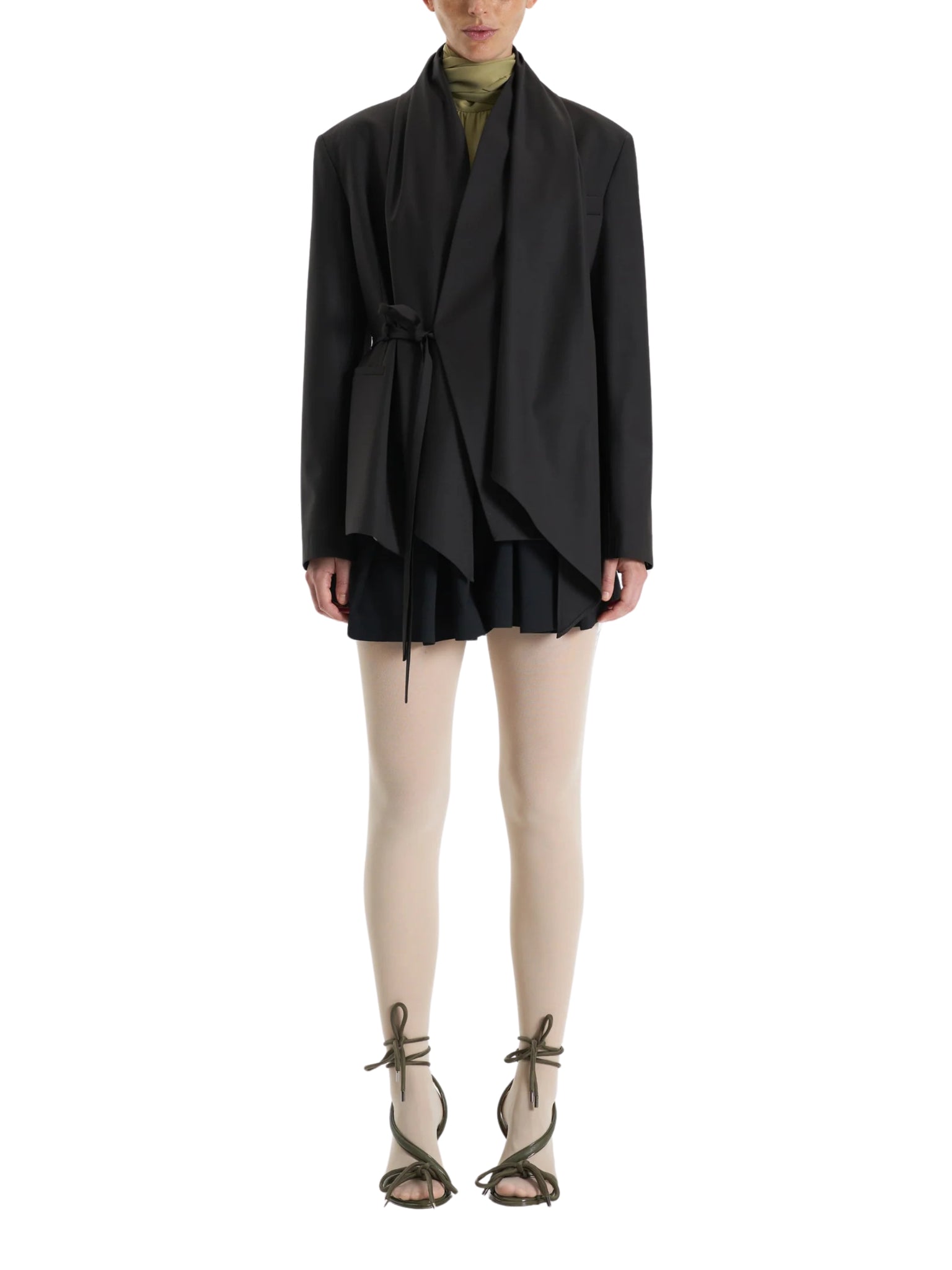 Make a bold statement with the Baqa Khaki Belted Draped Jacket. Designed to blend contemporary style with effortless sophistication, this jacket features a draped silhouette and a belt detail that defines the waist for a flattering, elegant look.