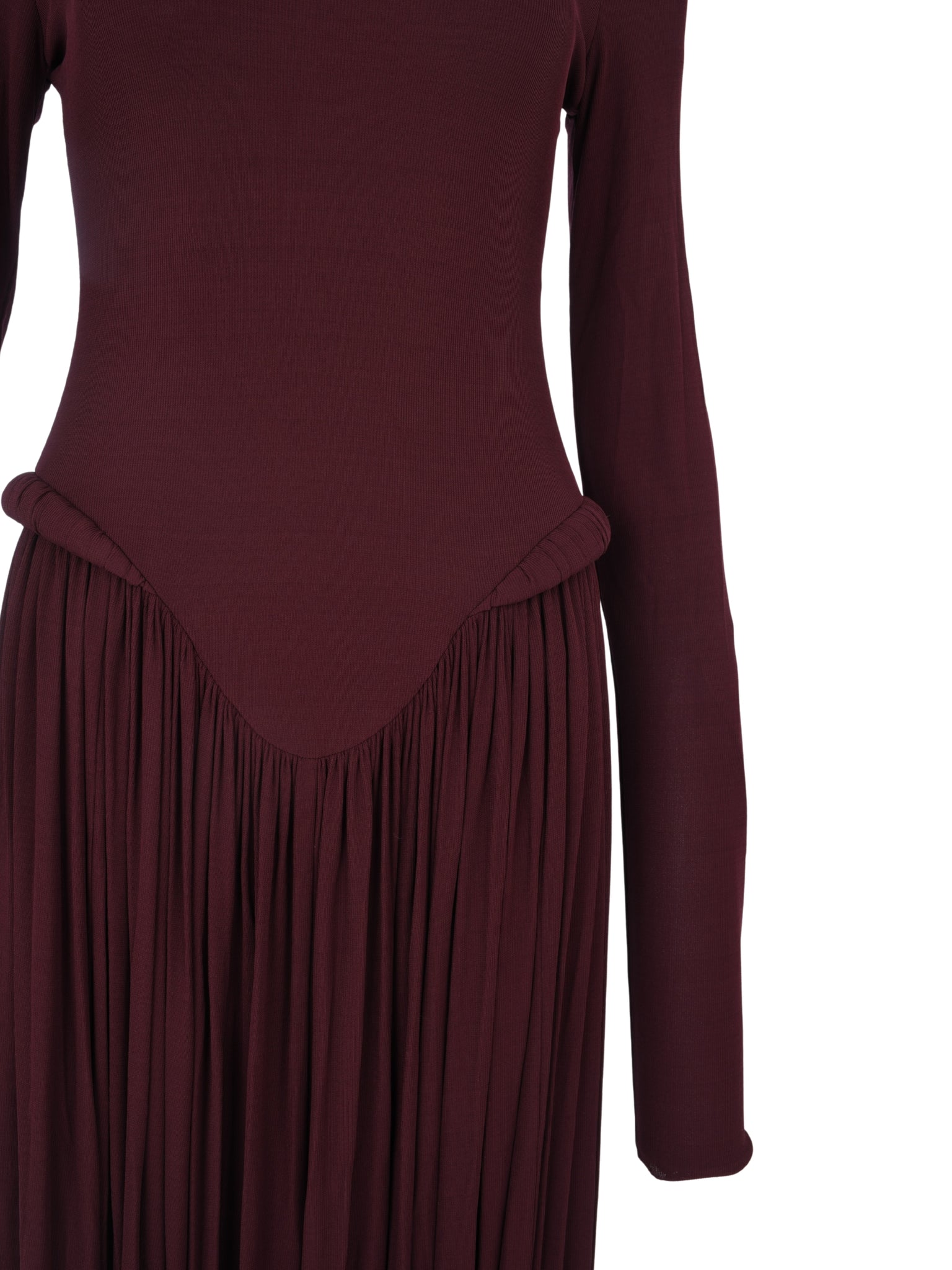 Rich and refined, the BAQA Dress in plum brings effortless elegance to modern dressing. Designed with a fluid silhouette and subtle stretch, it offers comfort and sophistication for elevated occasions in Saudi Arabia.
