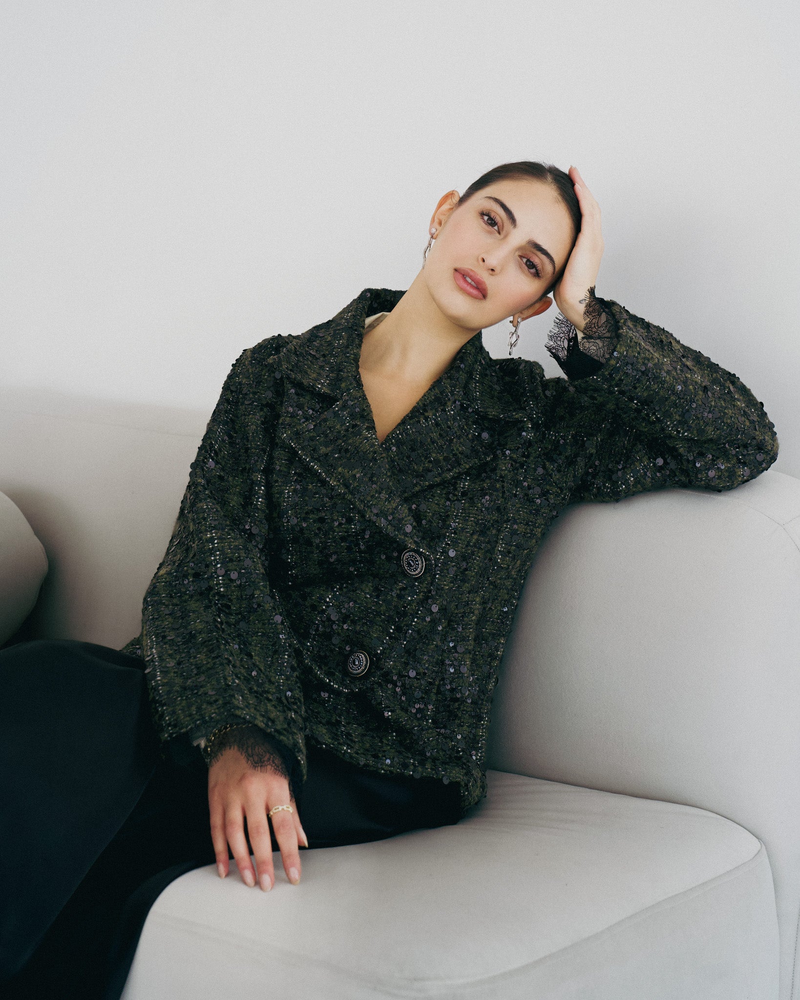 A modern green jacket by NASHL, designed to elevate everyday looks with effortless sophistication. Clean lines and a refined silhouette create a versatile piece that reflects contemporary Saudi luxury.