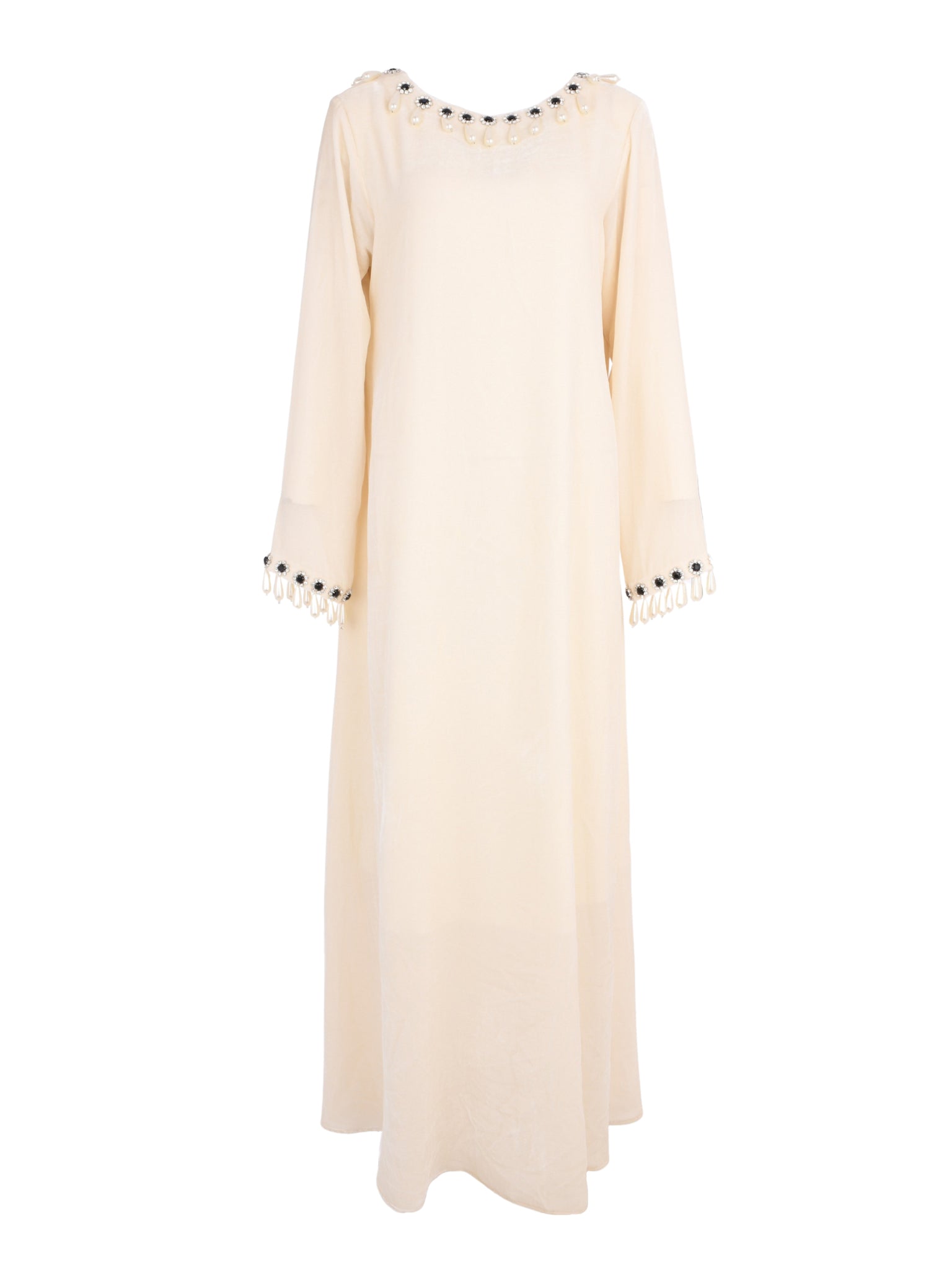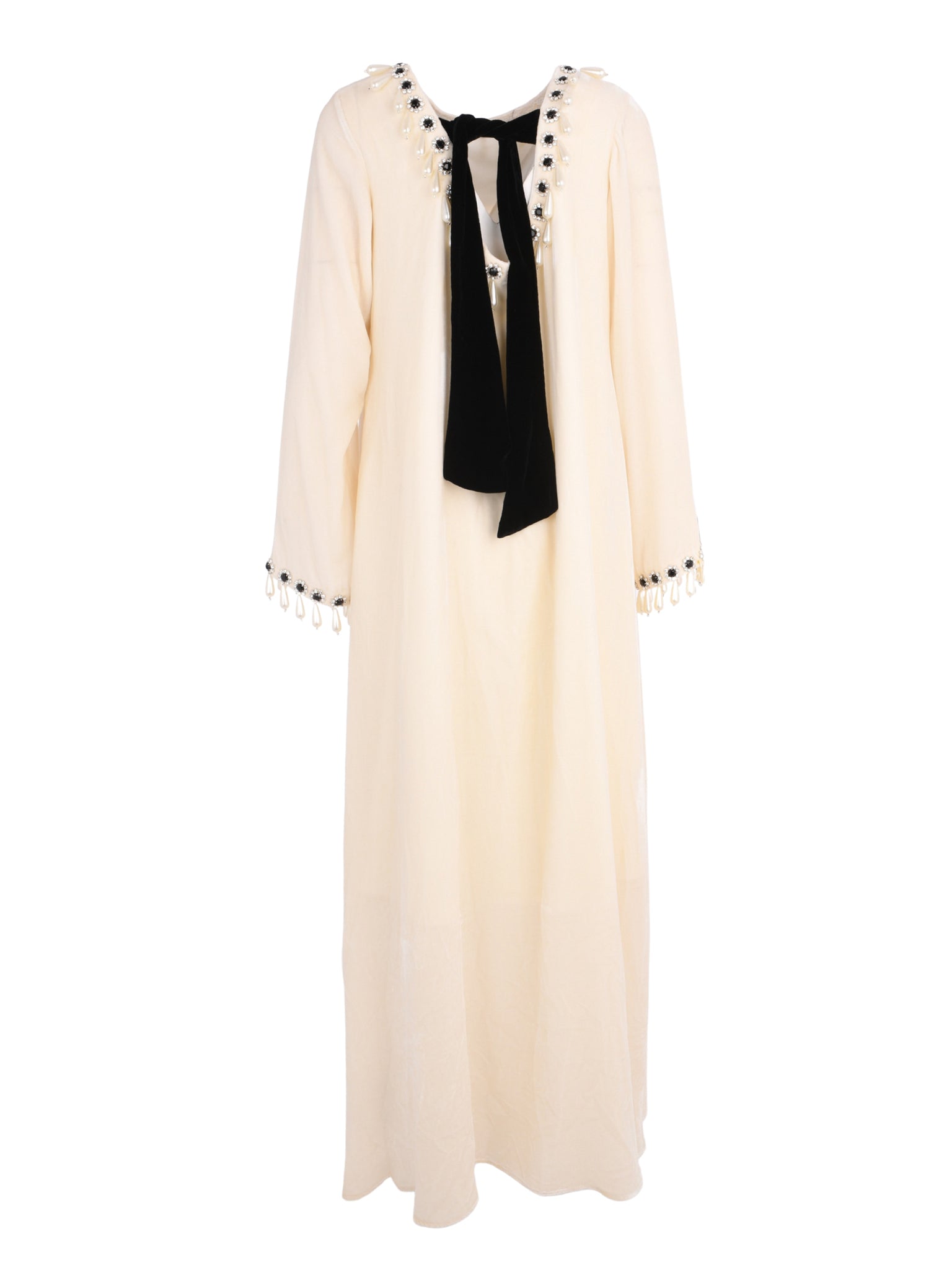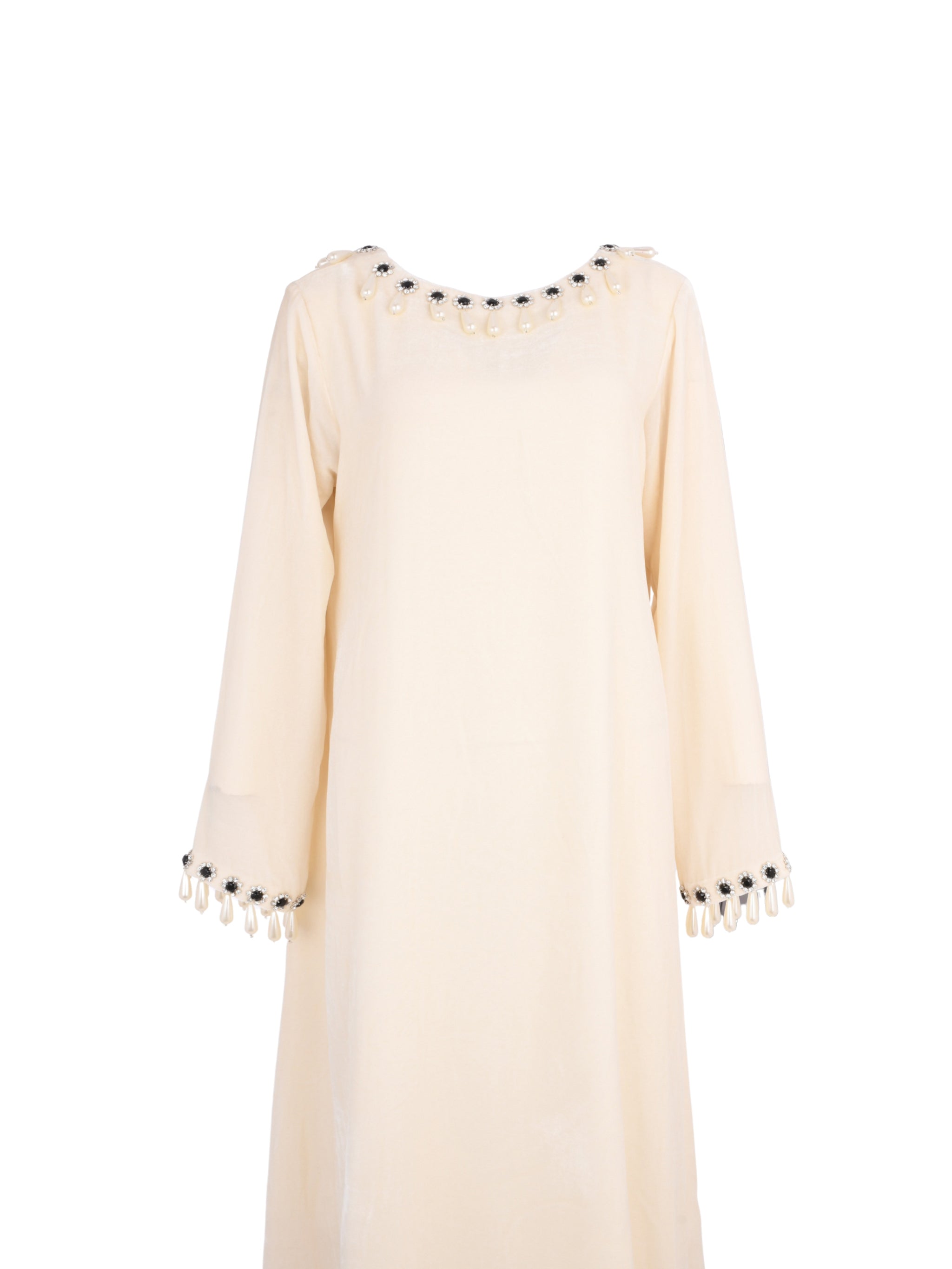 A refined white velvet pearl piece by Rasha Bilal designed to express elegant contrast and timeless sophistication. Featuring black pearl detailing against a soft velvet base, this design delivers a polished statement for refined occasions.