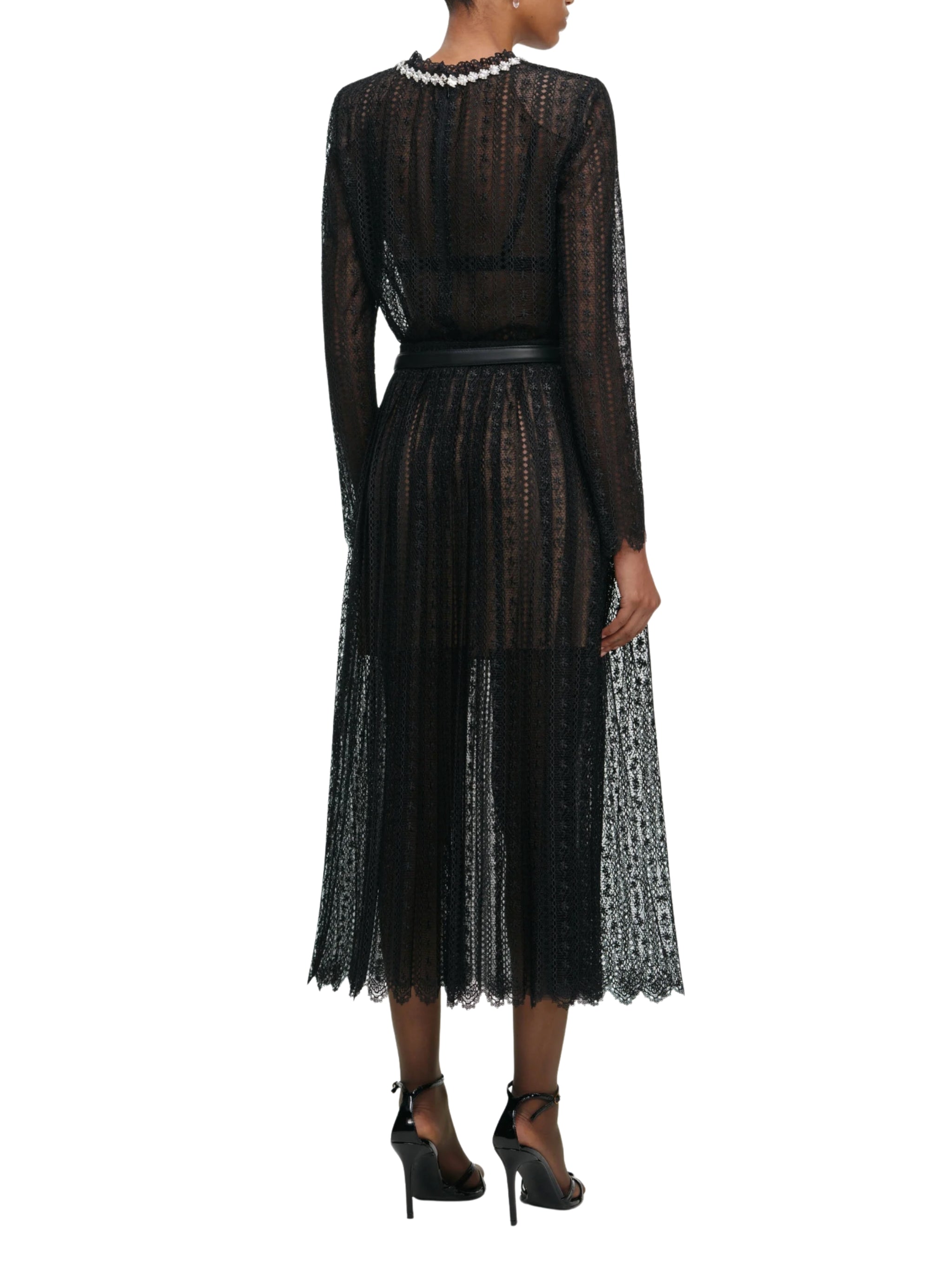 See and be seen in this black organza lace midi skirt by SELF PORTRAIT. Airy pleats add ultra-feminine movement, making it perfect for layering with knits and boots by day or pairing with the matching top and heels for elegant evening occasions.