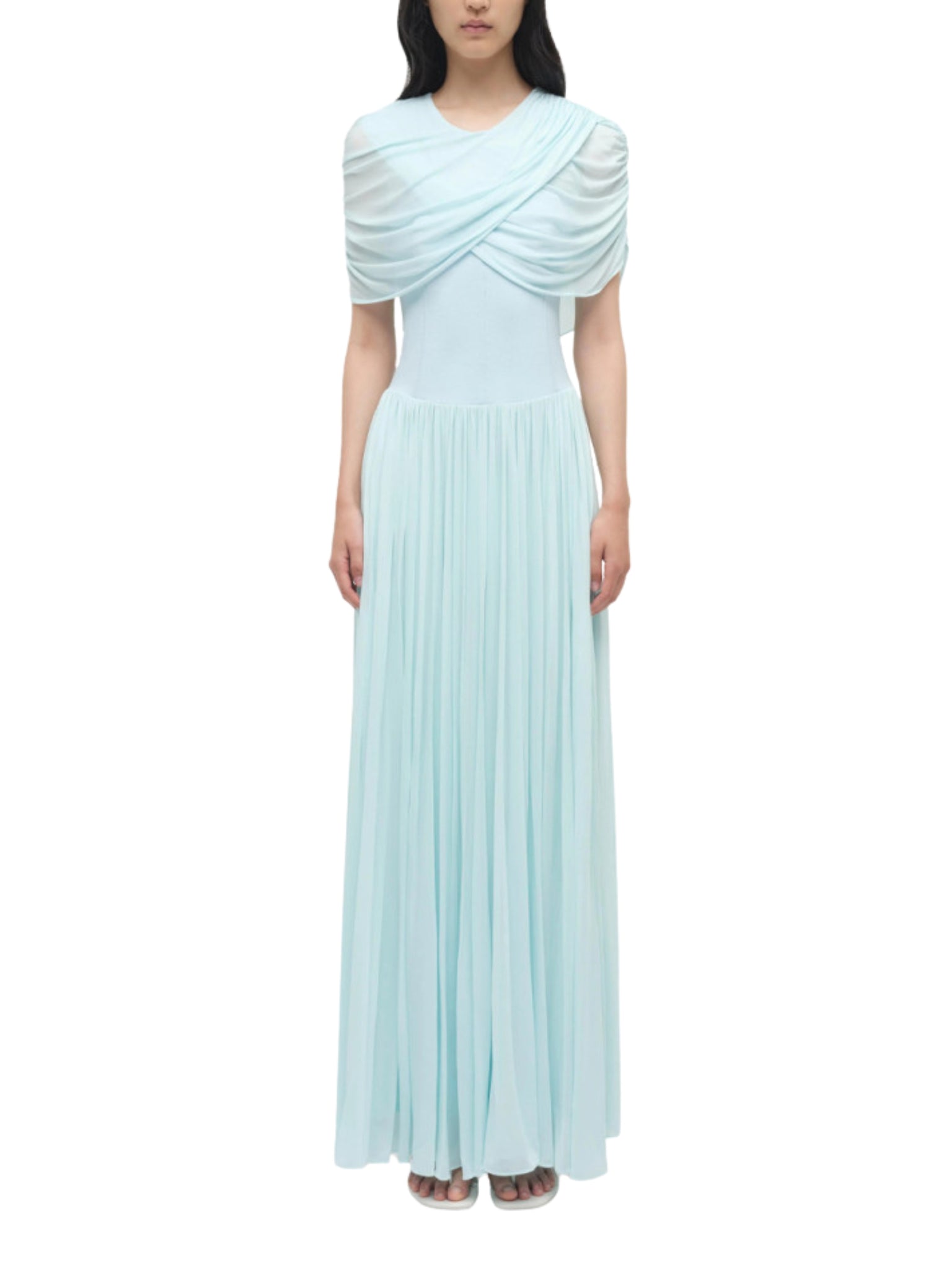Exude elegance with the Nancie Cape Midi Dress by SIMKHAI in serene sky blue. Designed for the modern woman in Saudi Arabia, this dress features a graceful cape overlay and flowing midi silhouette, combining contemporary style with refined sophistication for formal events, Ramadan gatherings, and special occasions.