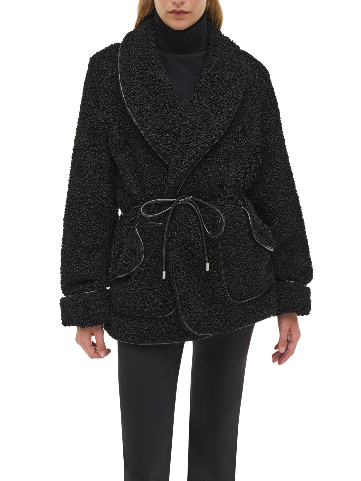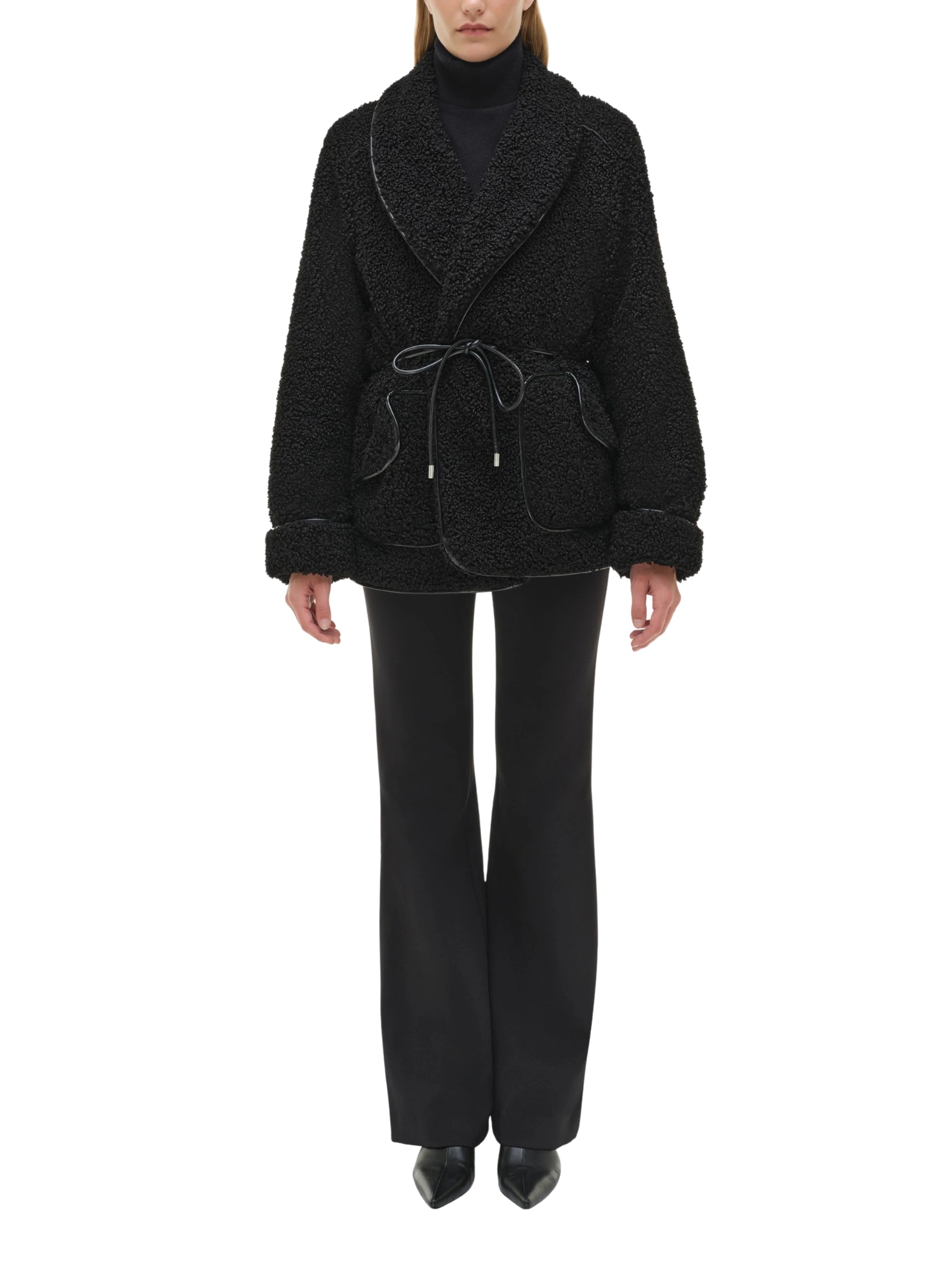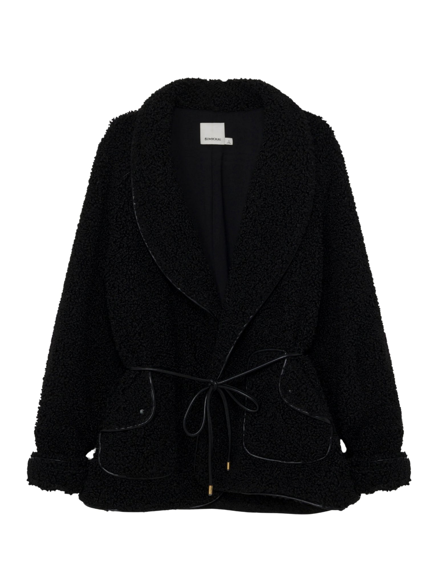 Elevate your outerwear with the Kimia Tie Waist Jacket by SIMKHAI. Designed in sleek black, this tailored jacket combines a flattering tie-waist silhouette with modern textures — perfect for chic layering and sophisticated styling in Saudi Arabia.
