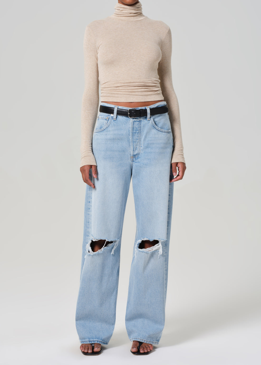 The Ayla Jean combines reworked vintage inspiration with modern versatility. Featuring a flattering, easy top block that flows into a roomy, cuffed leg, this denim piece is made from a sustainable blend of regenerative and recycled cotton. Whether you wear them cuffed or uncuffed, these jeans offer a chic, relaxed fit that's perfect for all heights.