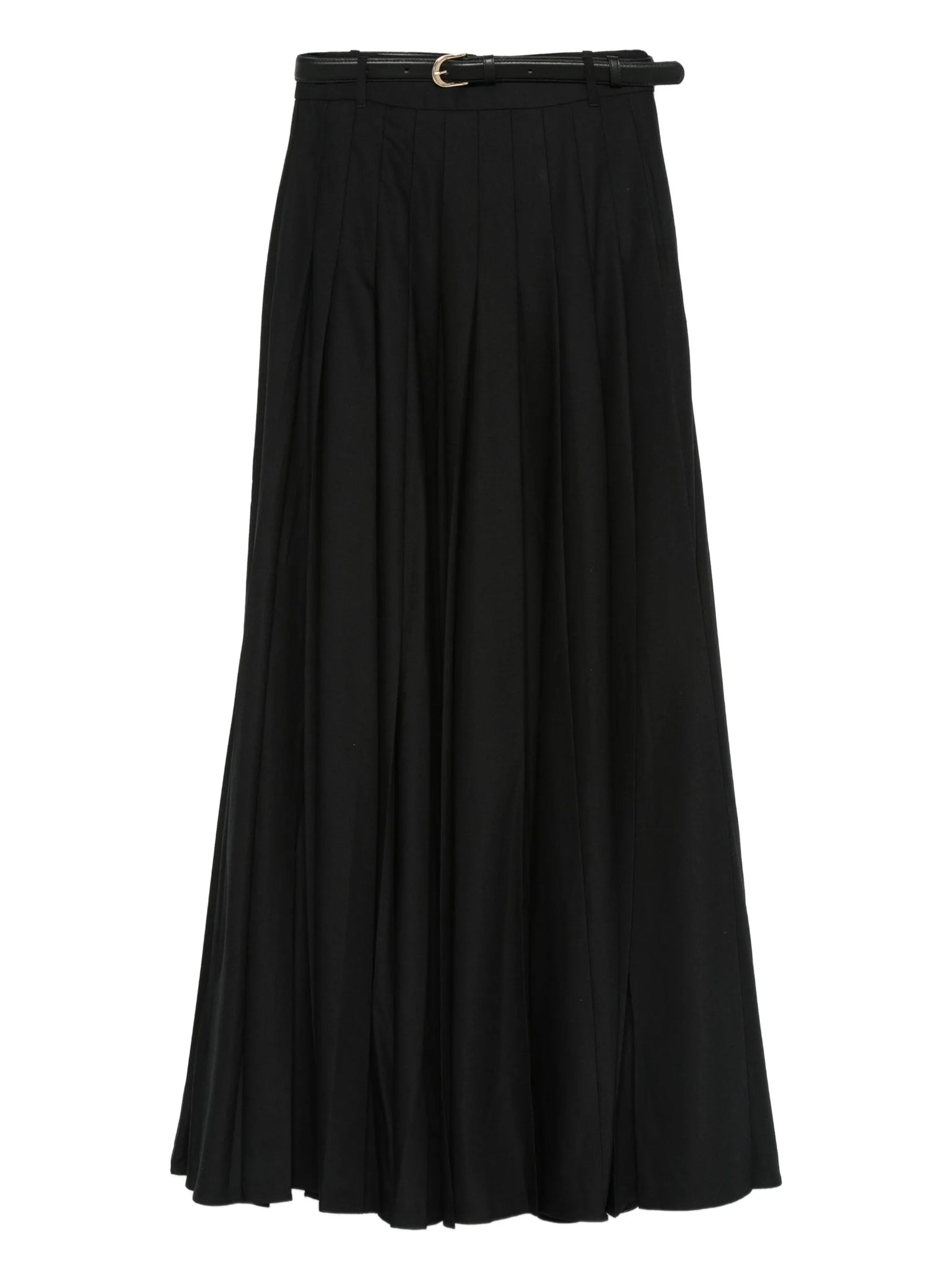 Modern tailoring meets feminine flair in this structured pleated twill maxi skirt by SELF-PORTRAIT. Finished with a sleek side slit and removable belt, it's a versatile piece that transitions effortlessly from office to evening.