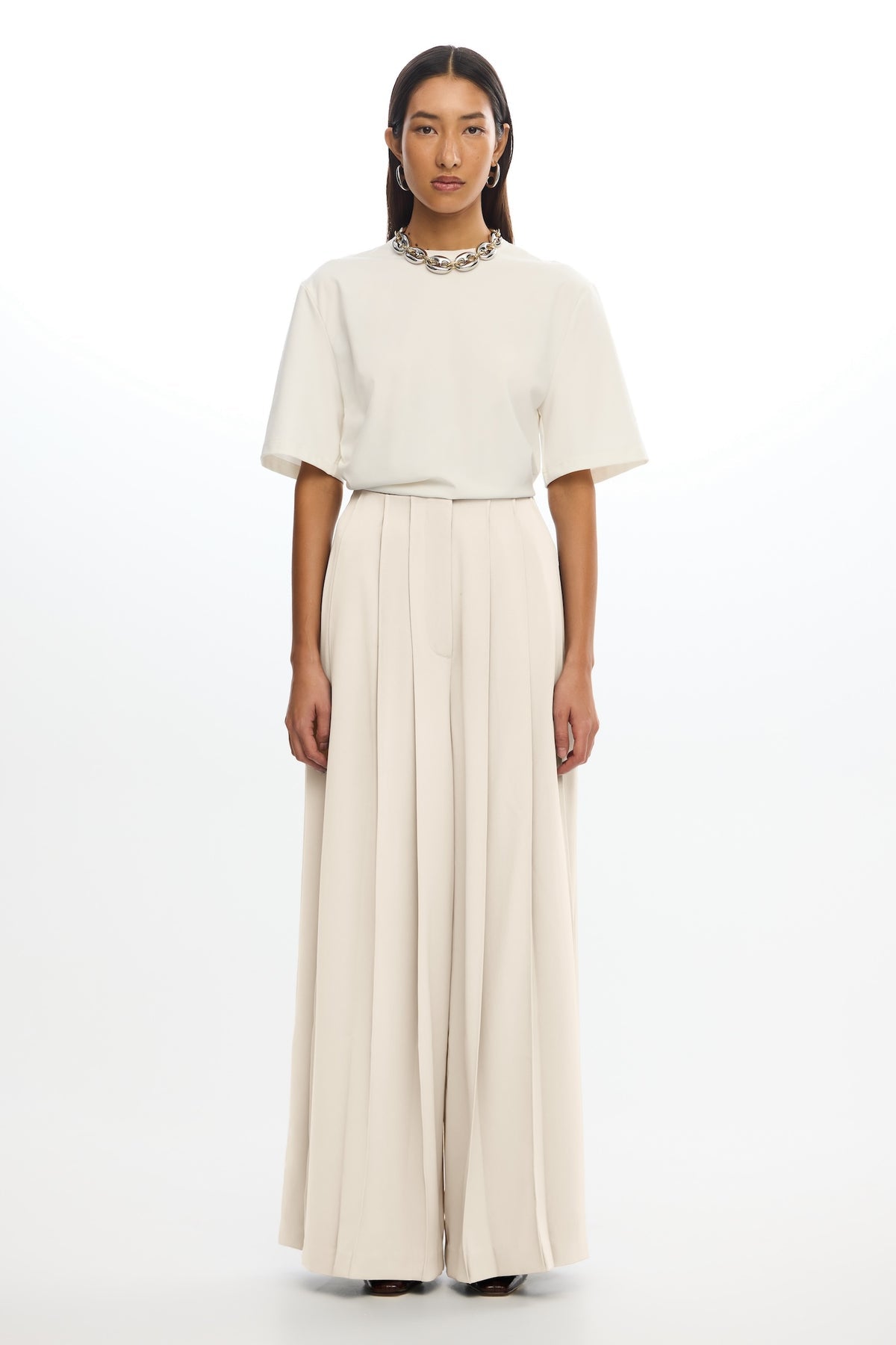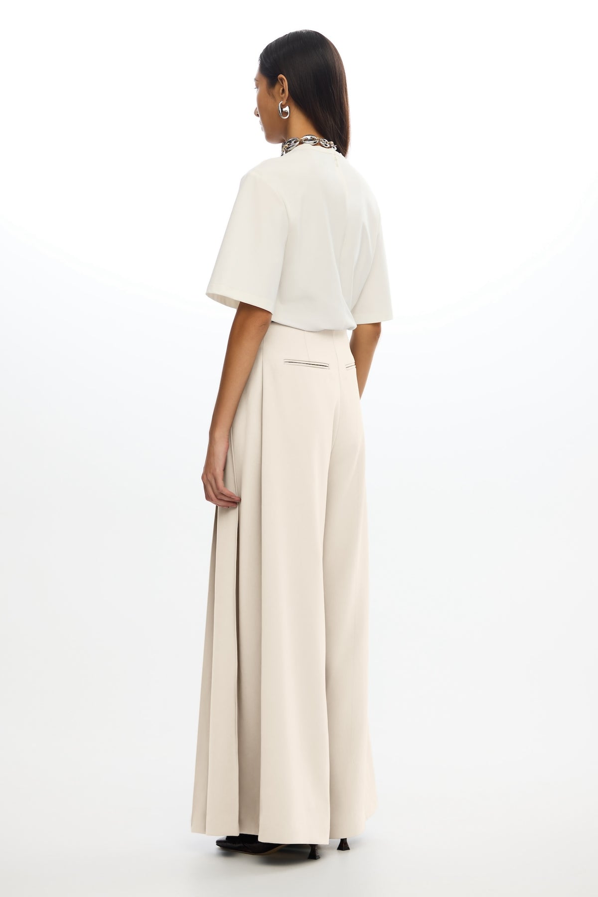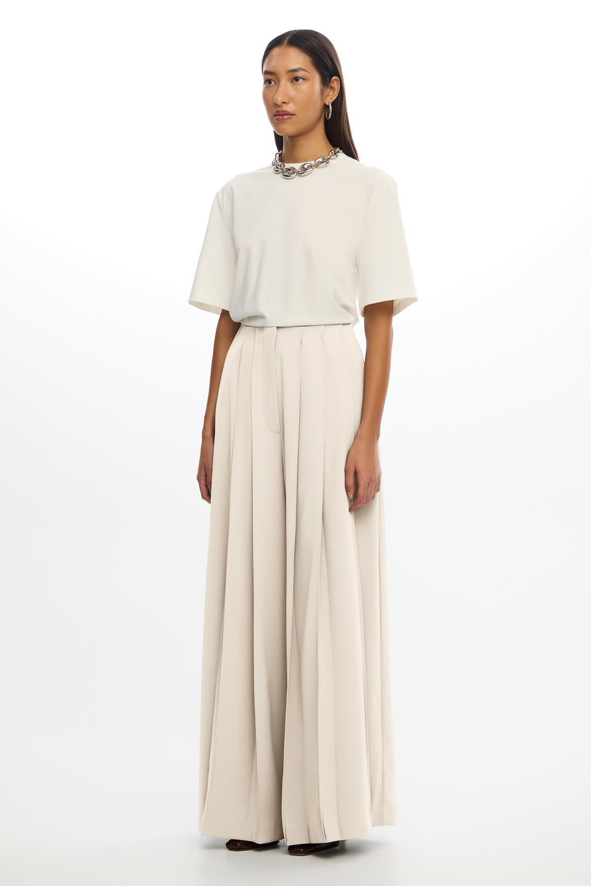 The Bowie Pants in Alabaster are a wardrobe essential for the modern woman. Featuring a fluid wide-leg silhouette and minimal seam detailing, these trousers strike the perfect balance between relaxed elegance and sharp tailoring—ideal for work, travel, or polished everyday style in warm climates.