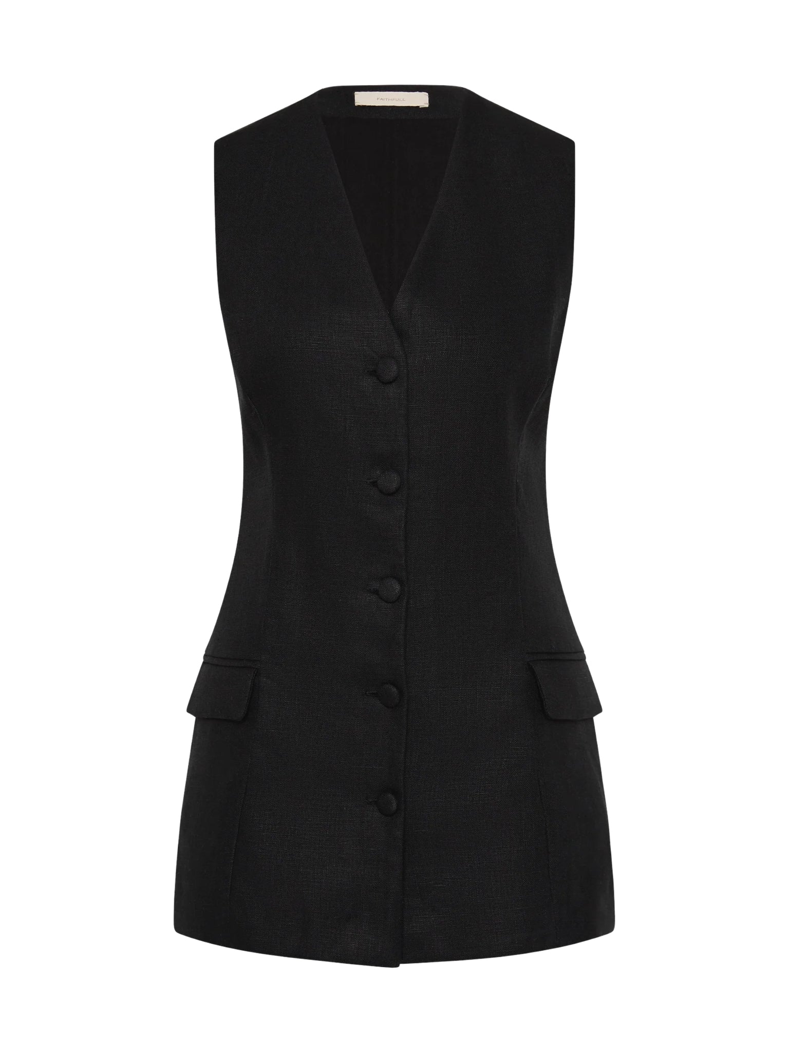 Add a fresh, breathable layer to your wardrobe with the Eloise Vest, crafted from a blend of 100% linen and 100% cotton. This versatile vest combines comfort and style, making it perfect for warm days and easy layering in Saudi Arabia.
