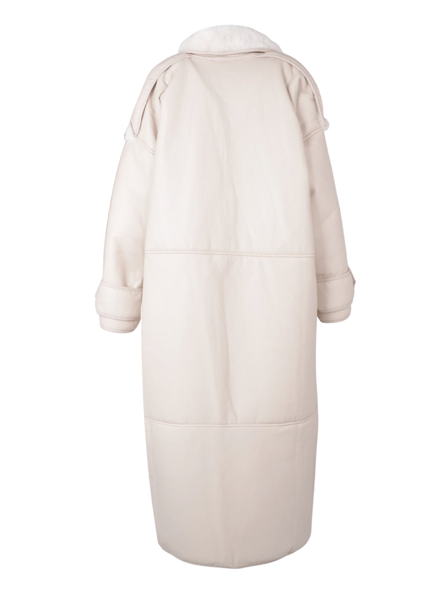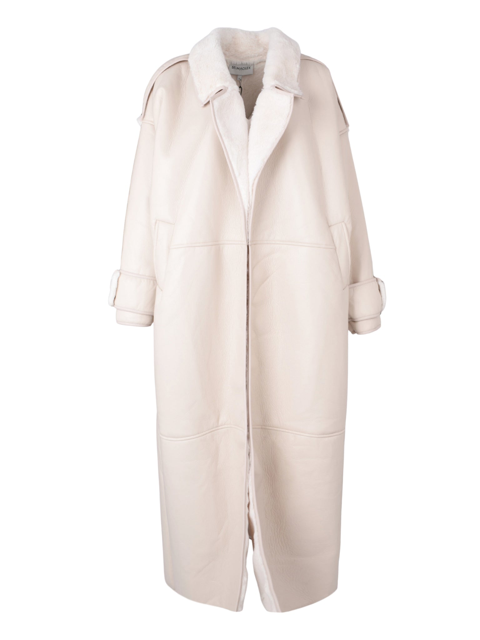 Wrap yourself in refined luxury with the Selmacilek Ecru Maxi Coat. Designed to make a statement, this elegant piece combines soft faux fur and smooth vegan leather for a modern, feminine silhouette that embodies warmth, texture, and sophistication. Perfect for elevated winter styling in Saudi Arabia.
