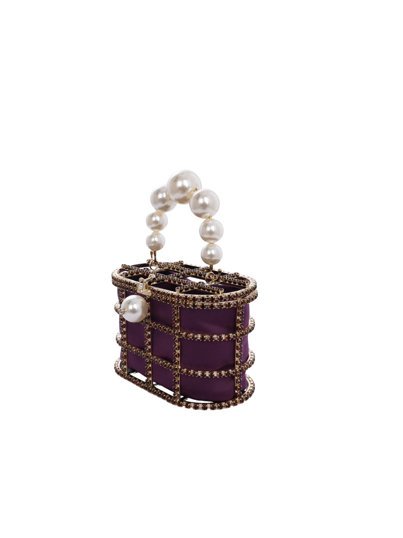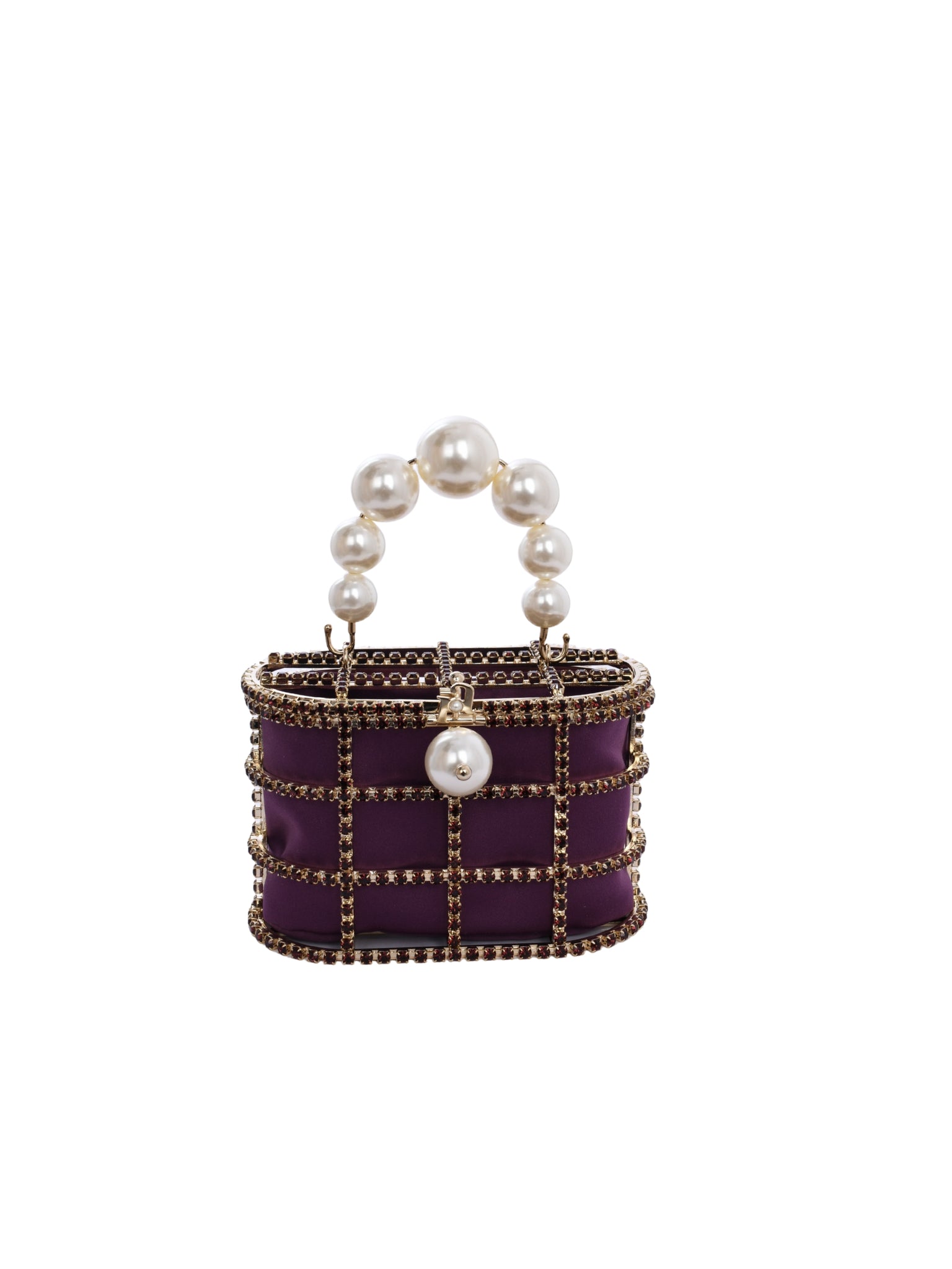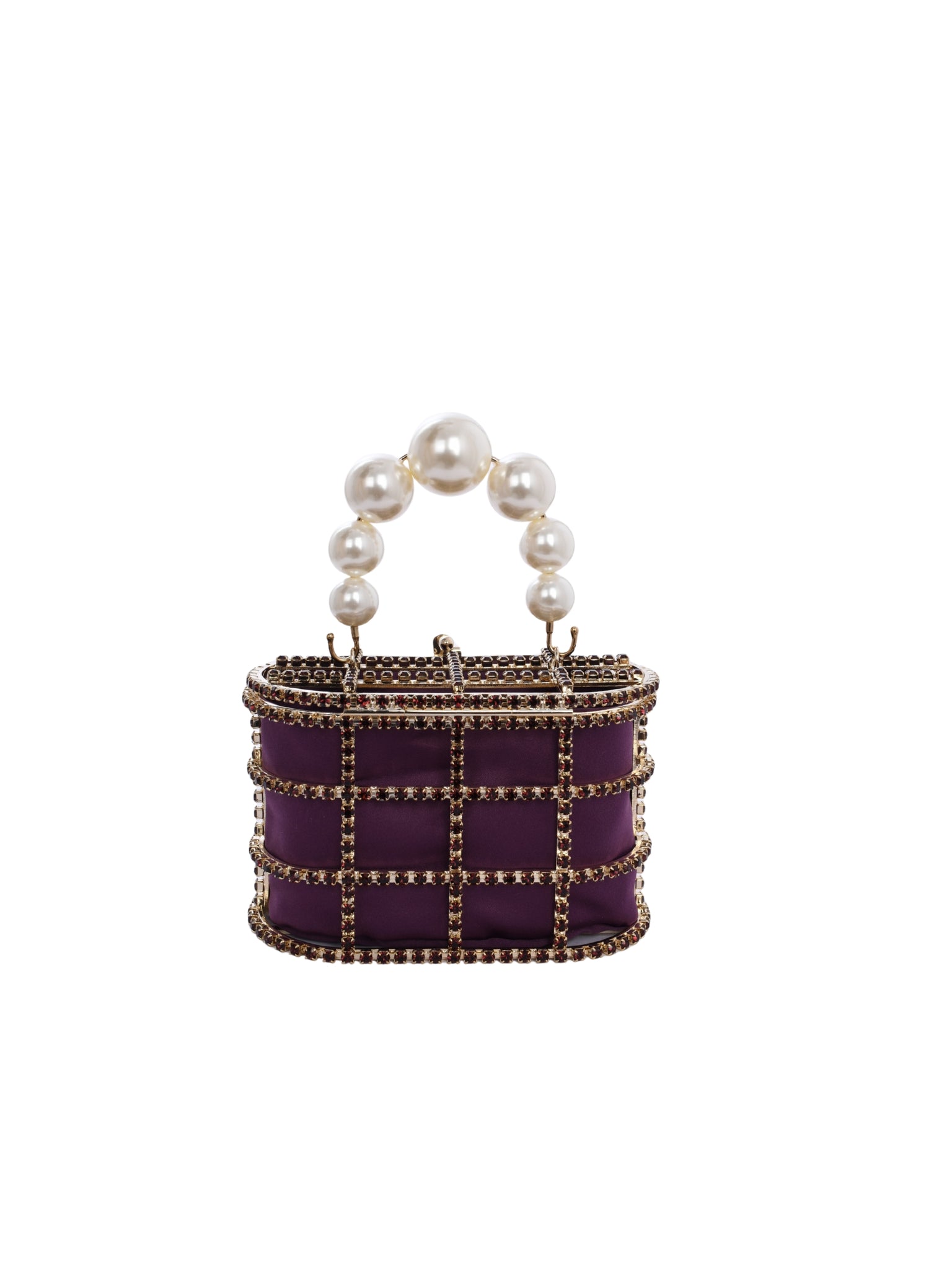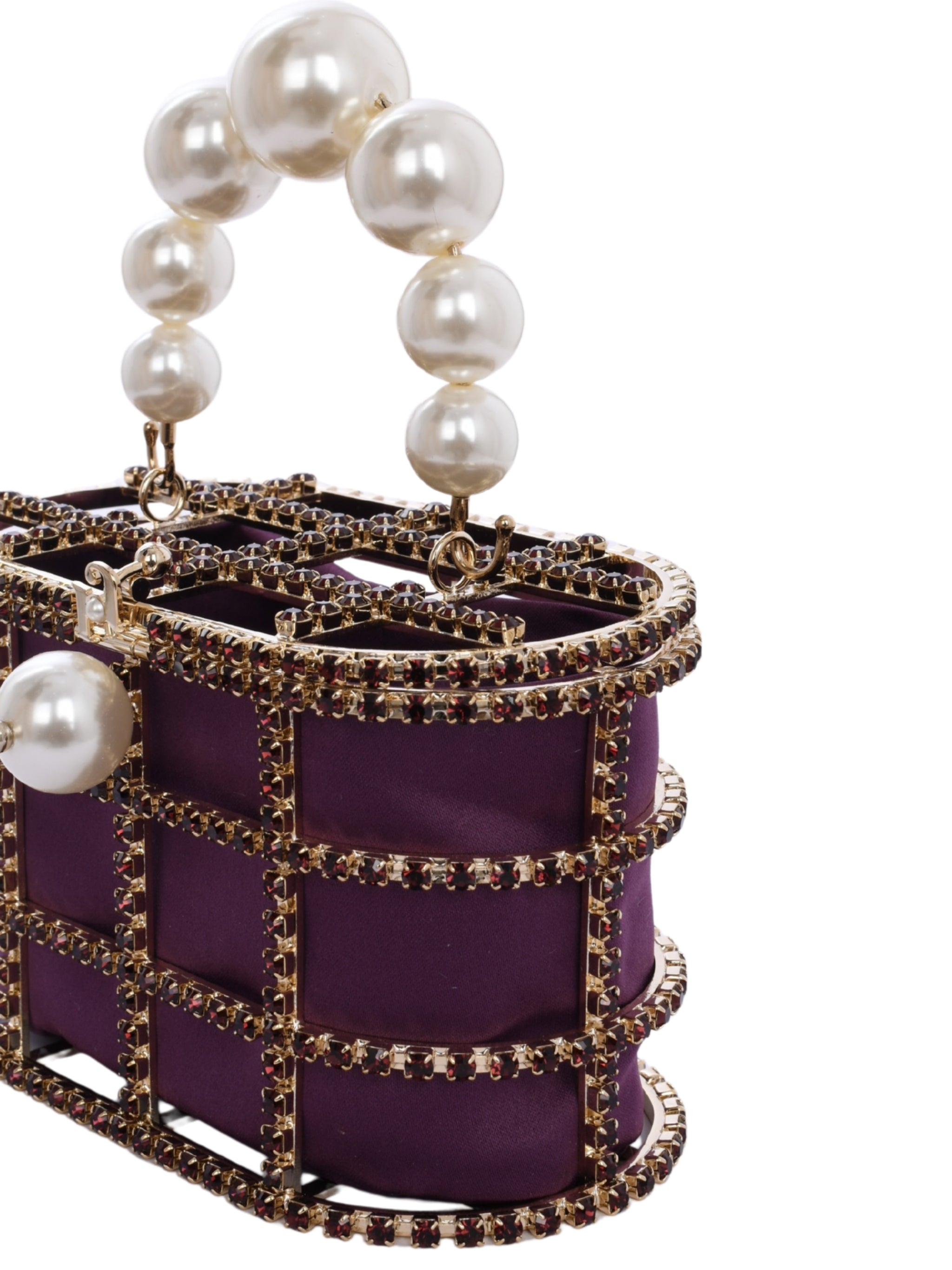 Make a bold statement with the Mini HOLLI Rosantica bag in rich burgundy. Expertly handmade in Milan, this luxurious evening bag combines brass, crystals, and resin pearls to create a refined accessory perfect for elegant Saudi occasions.