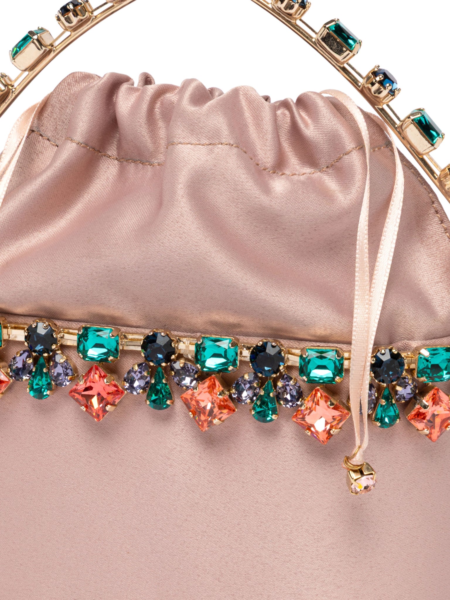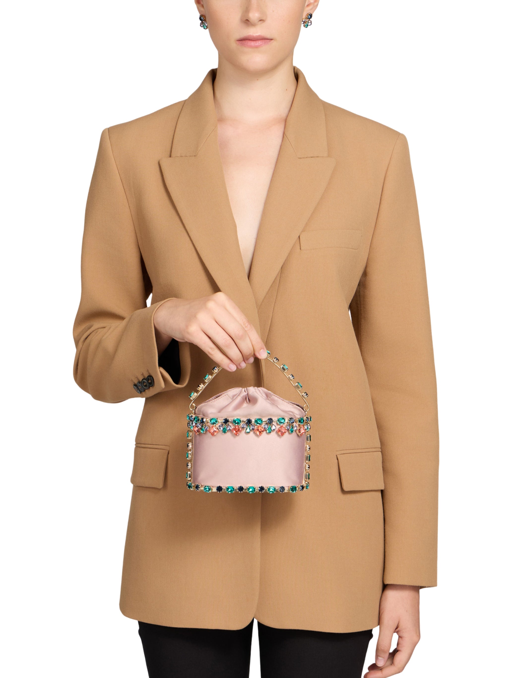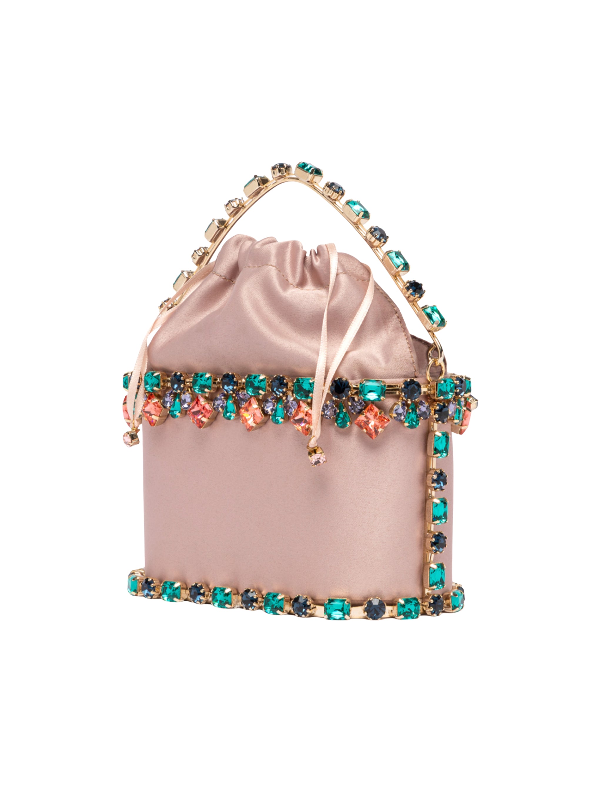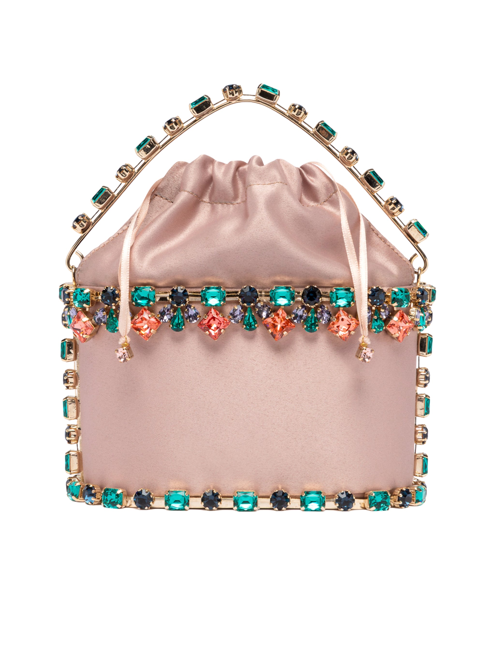 Small in size, big in personality, the Mini Holli Buganville embodies the vibrant spirit of the collection. Multicolored crystals bloom over a compact golden frame like radiant petals, while a satin-lined interior adds a luxurious finishing touch. Every detail is unique, unforgettable, and full of charm.