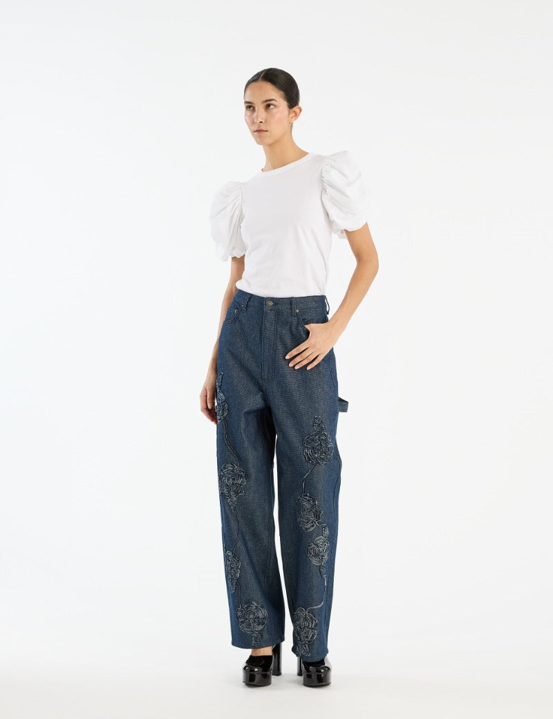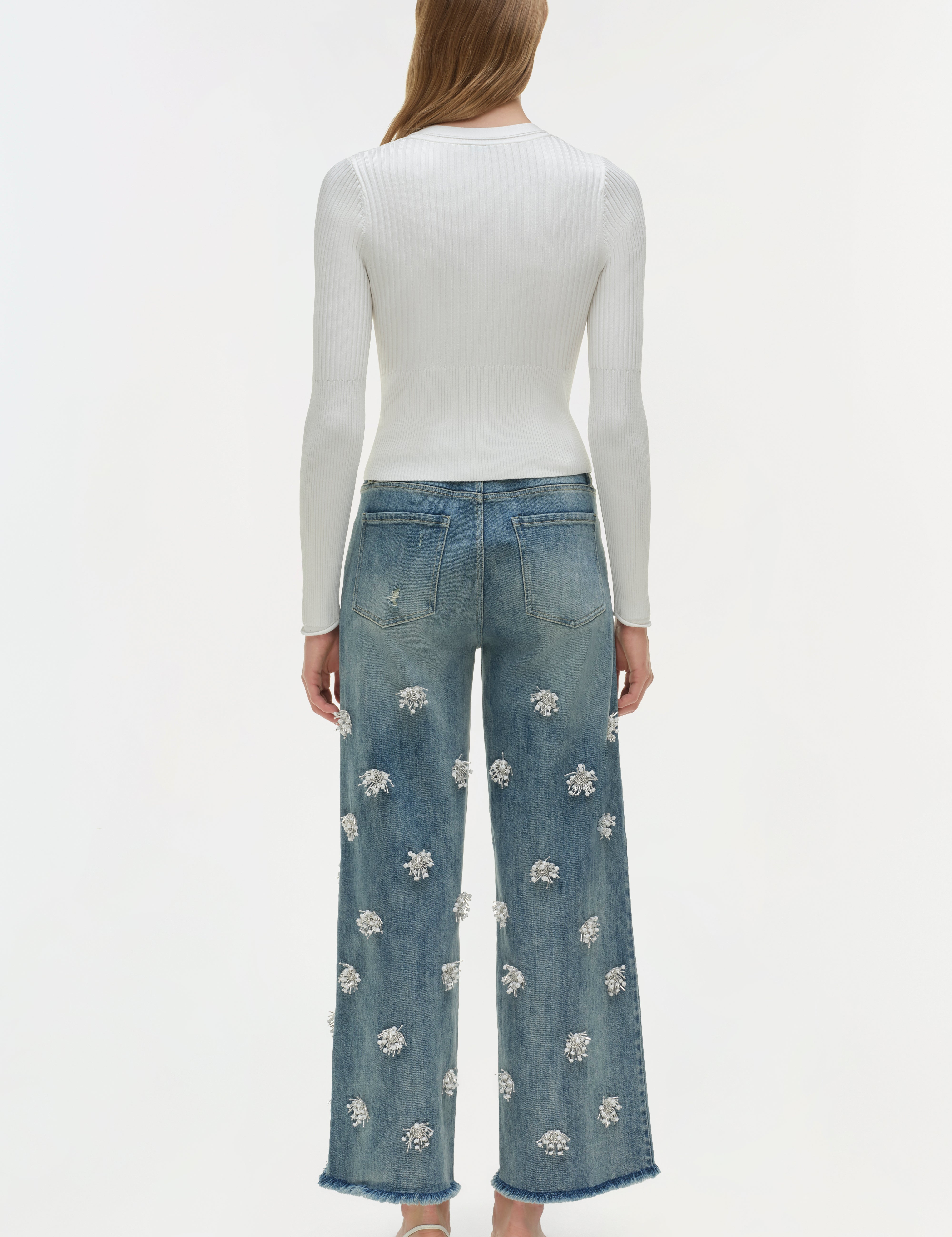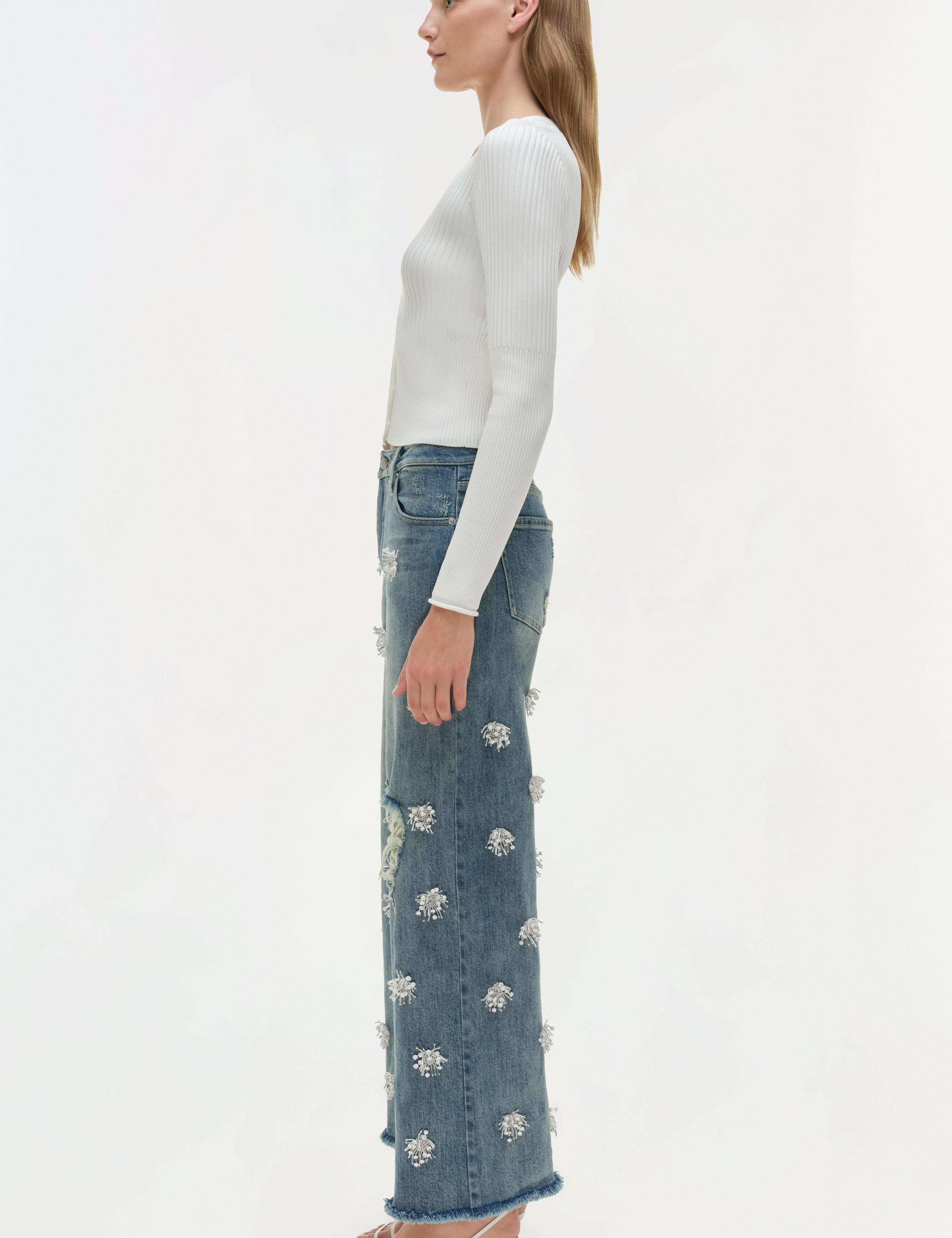 WHITE CUTWORK DENIM JEANS