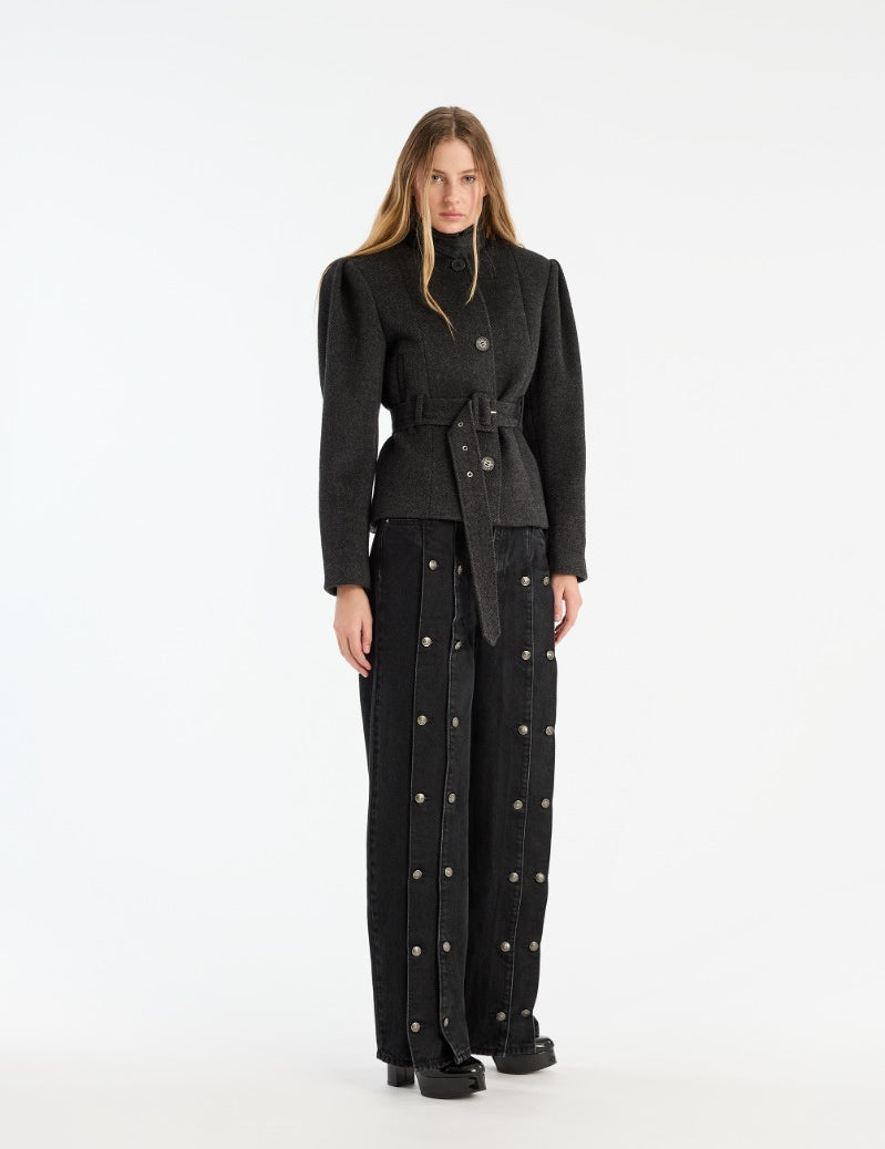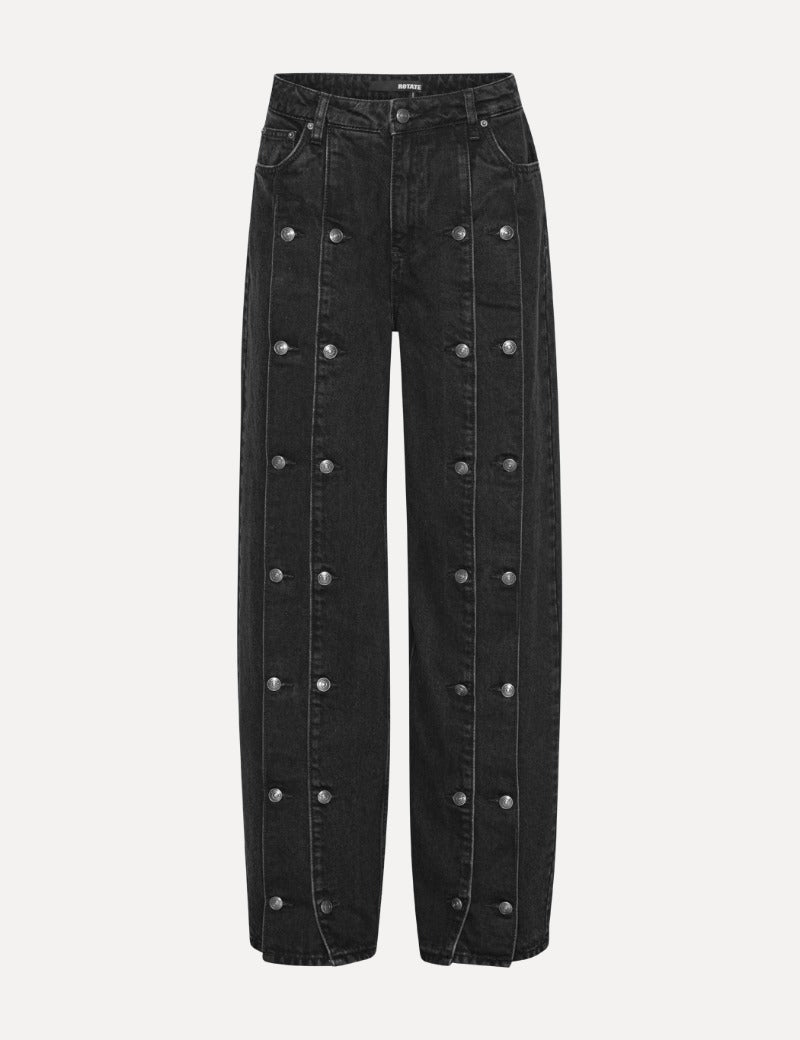 Button Detail Wide Jeans Black