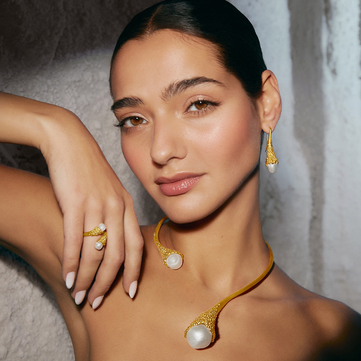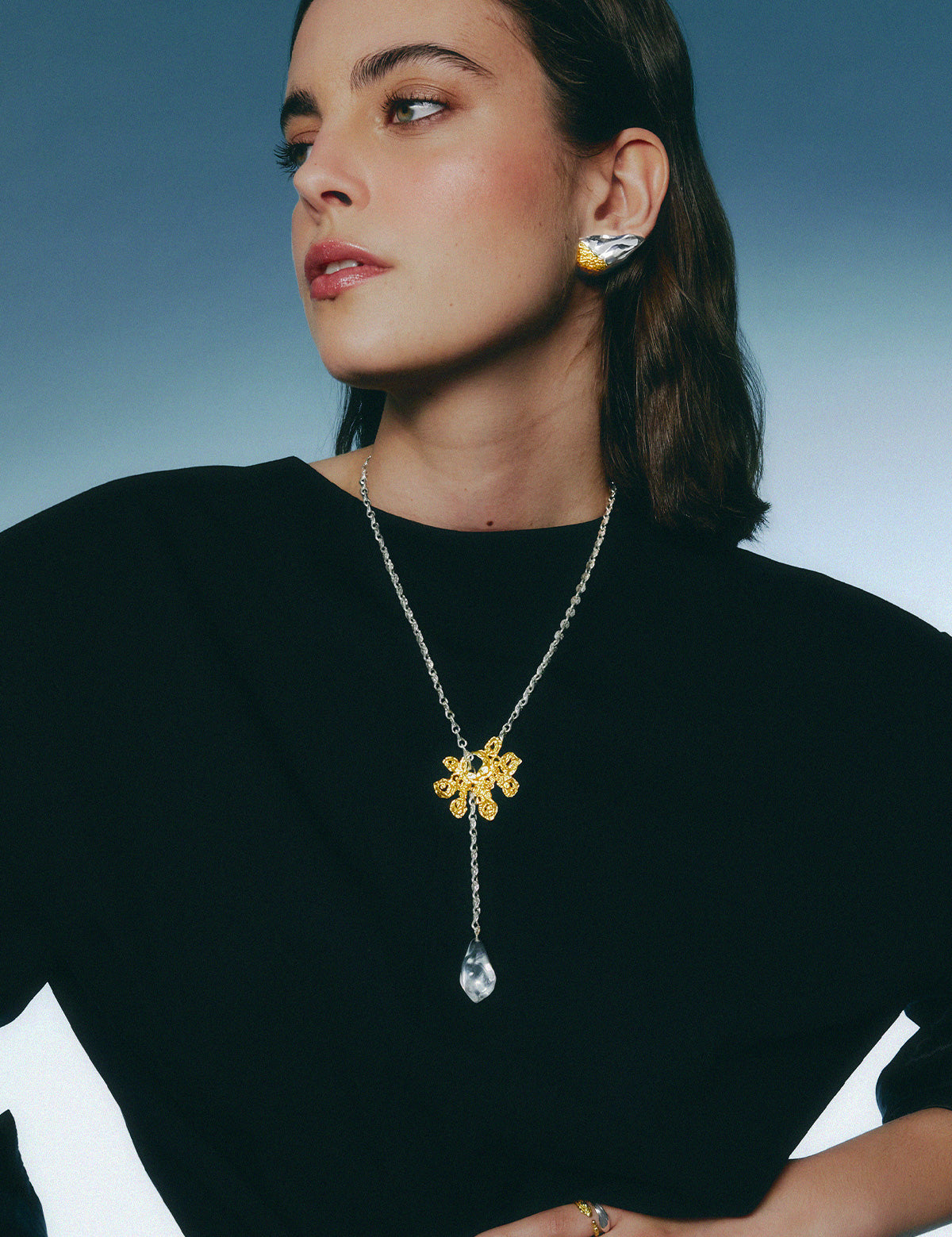 CRYSTAL BOW PEARL JACKET EARRINGS
