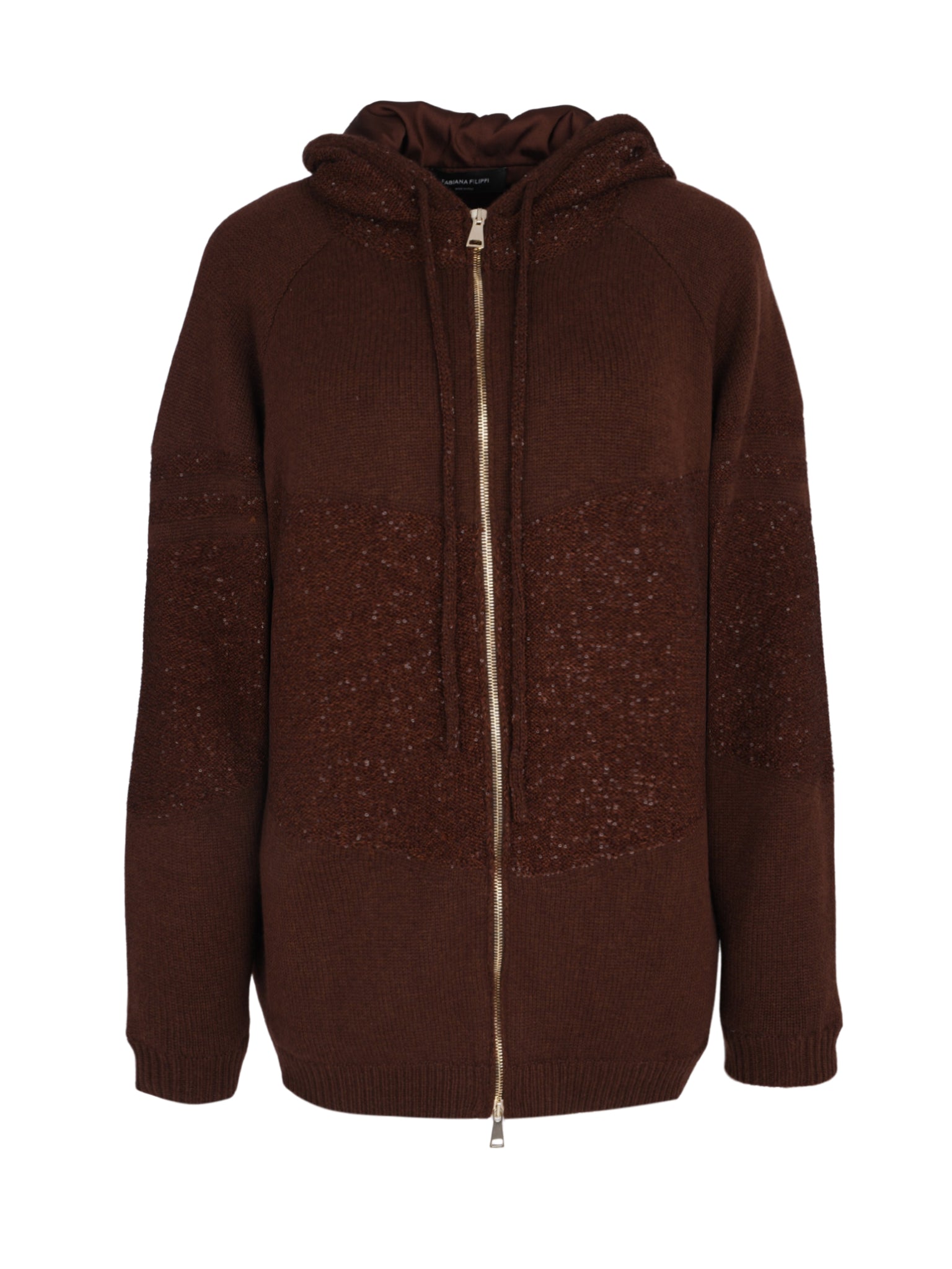 A luxurious hooded sweater from Fabiana Filippi featuring geometric sequin intarsia, crafted from a premium wool and silk blend for elegance and comfort in Saudi Arabia.