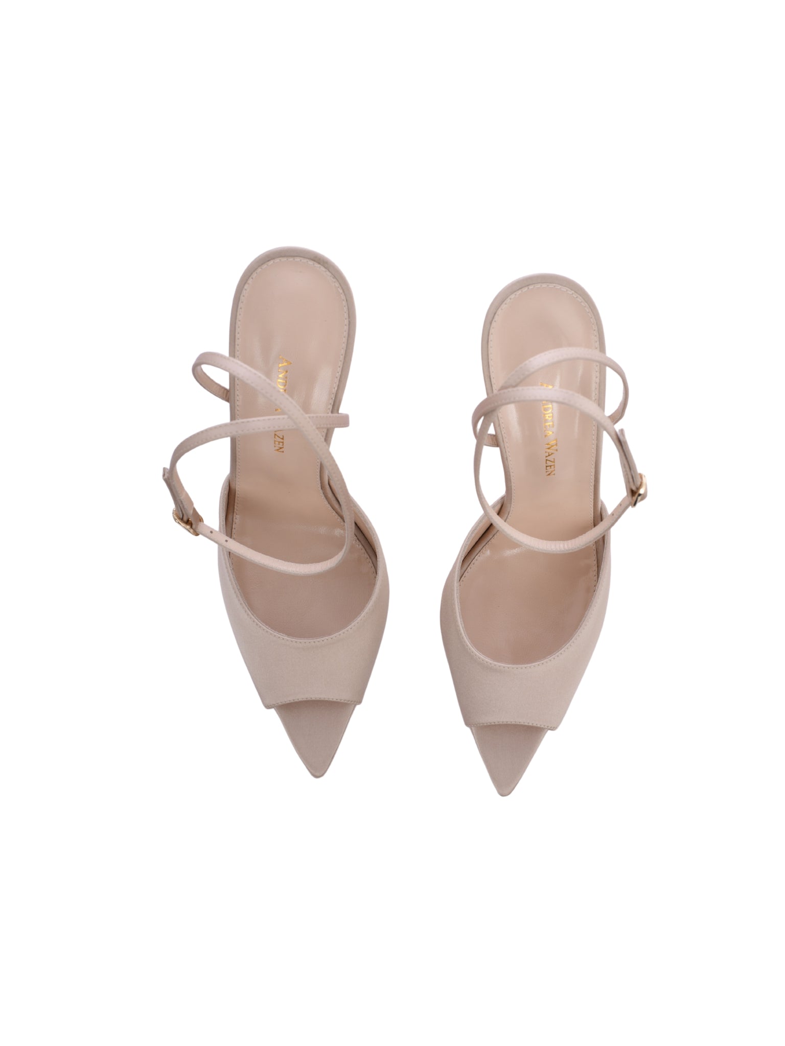 Make an unforgettable entrance with the Loulou Pump by Andrea Wazen. Crafted in luminous champagne satin and set on an ultra-high stiletto, this pump is designed for daring elegance and dramatic elevation.