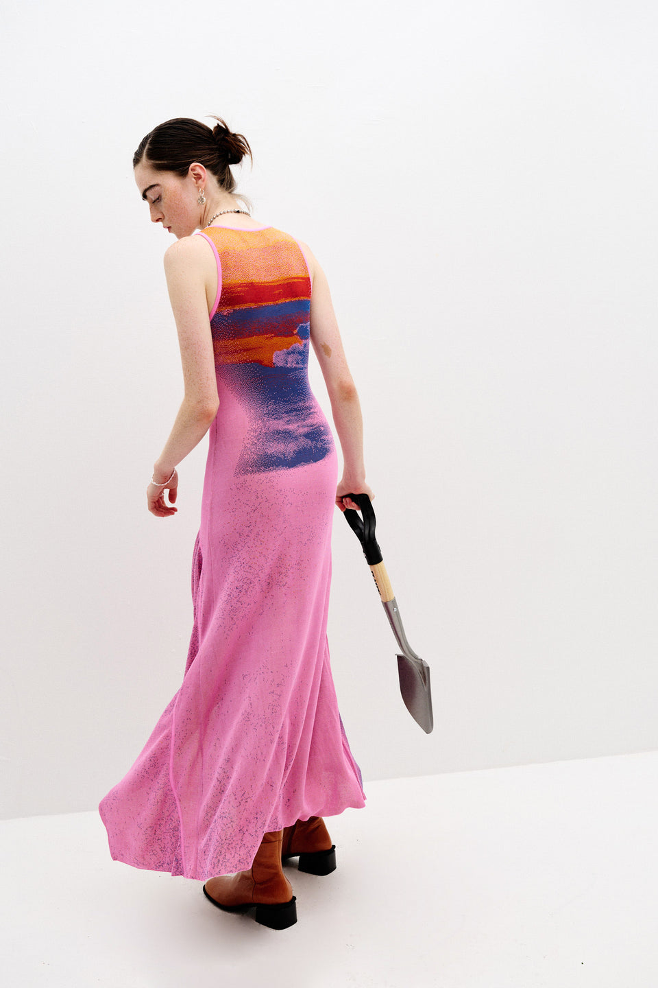 Flow with the rhythm of nature in the Becky Lake Print Maxi Tank Dress by PH5. This fluid silhouette features a serene, lake-inspired print and is crafted entirely from 100% recycled rayon, reflecting the brand’s dedication to sustainable luxury and artistic design.