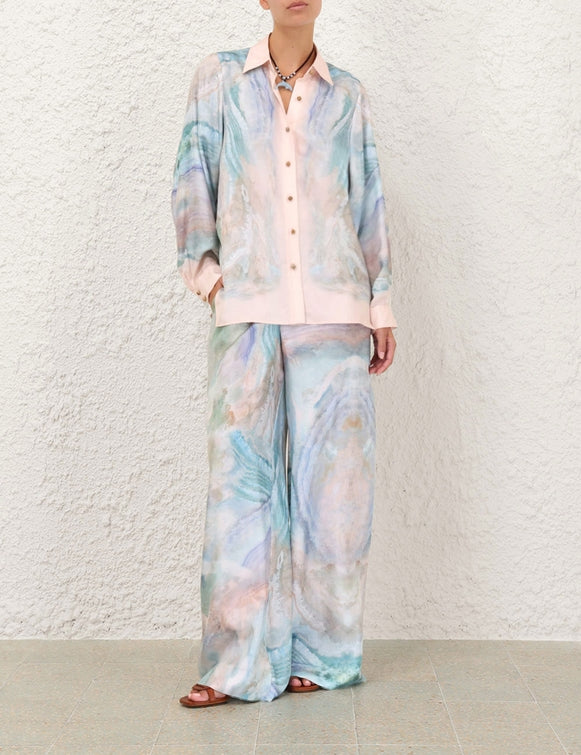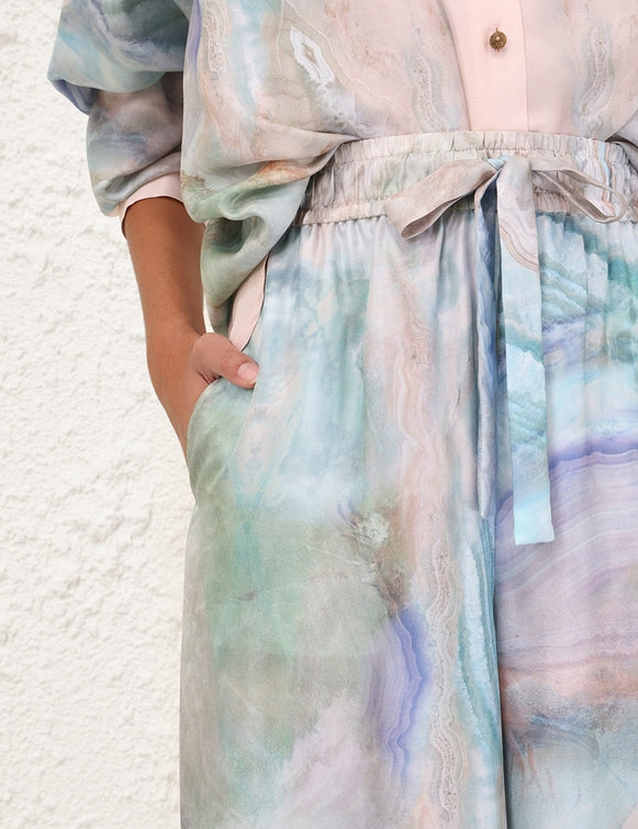 Elevate your casual wardrobe with the Illuminate Track Pant in Blue Agate—a luxurious take on off-duty style. Designed in fluid silk, these wide-leg pants offer an elegant drape and effortless movement. The elasticated waistband with a self-tie drawstring ensures a comfortable fit, while discreet side pockets add a practical touch.