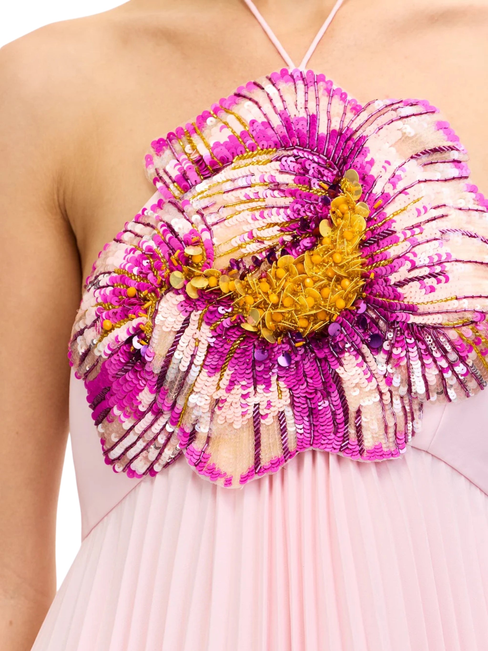 Fitted, fully lined bodice adorned with intricate floral sequin motif