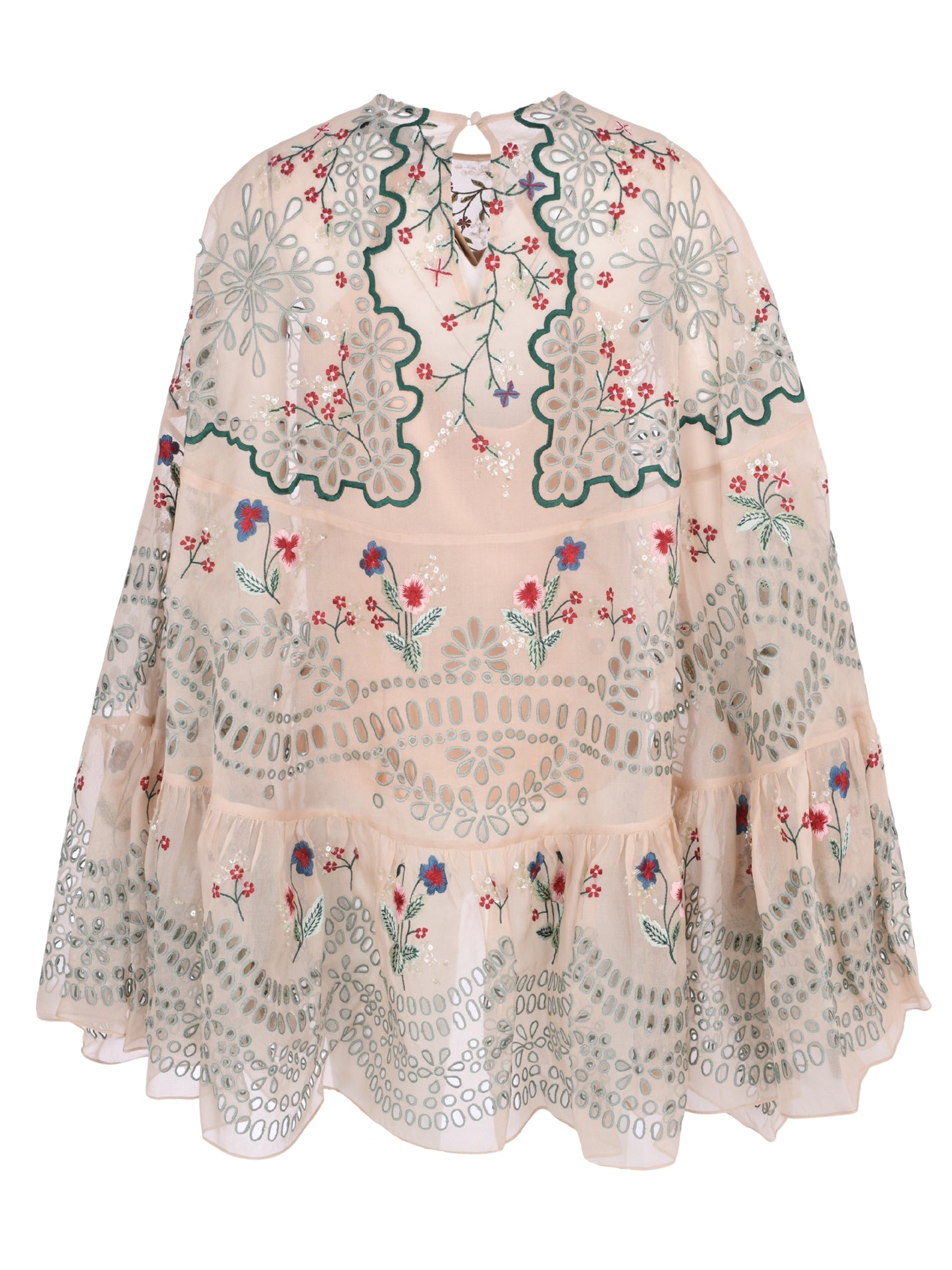 Slenda embroidered organza silk cloak blouse with back gathered peplum