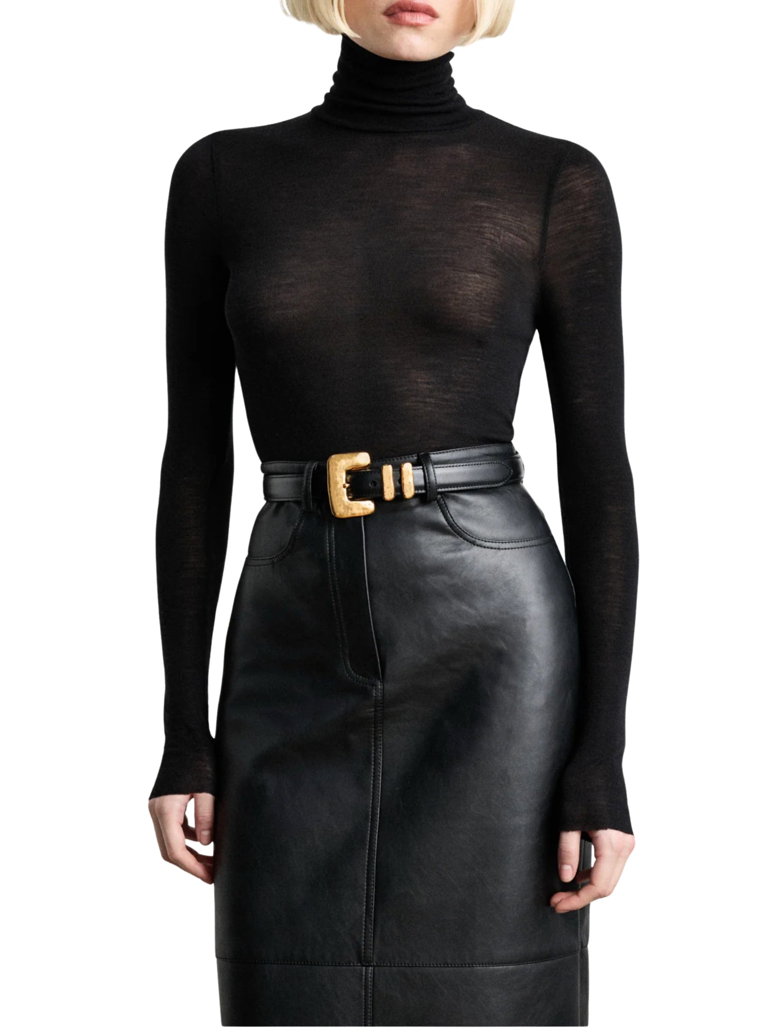 A striking fusion of vintage inspiration and modern refinement, the Tetra Gold Belt brings 80s glamour to life through Italian craftsmanship. Featuring a hand-hammered 24K gold-finished buckle and matching passant, this sleek black belt is designed to stand out—whether worn with a tailored abaya, structured dress, or high-waisted trousers. Each detail reflects couture-level precision, adding elegance and edge in equal measure.