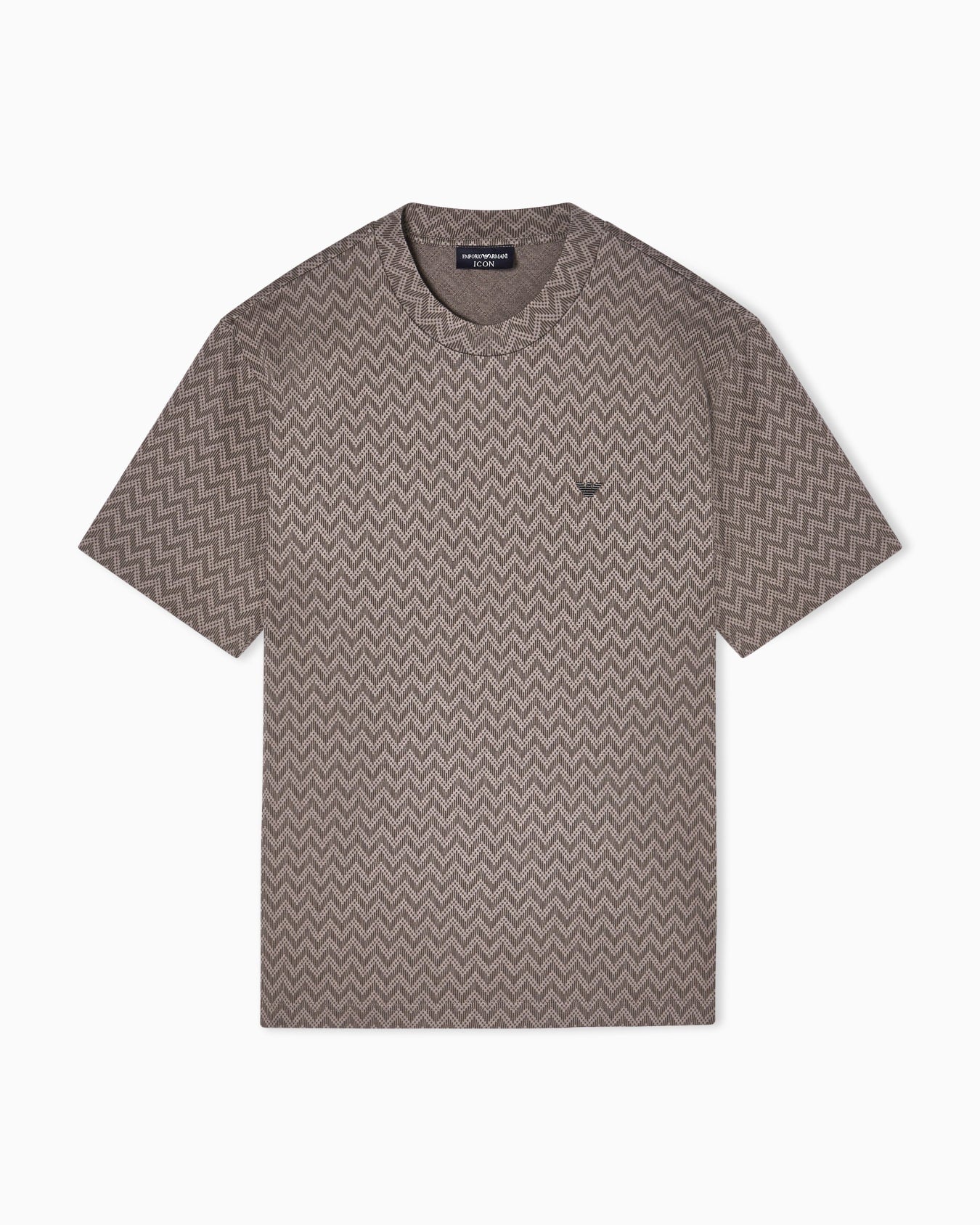 Part of the exclusive Emporio Armani Icon capsule collection, this crew-neck T-shirt combines classic cotton comfort with a modern jacquard design. Featuring a two-tone motif and a subtle embroidered micro eagle on the chest, it delivers luxury style and versatile casual elegance for Saudi Arabia.