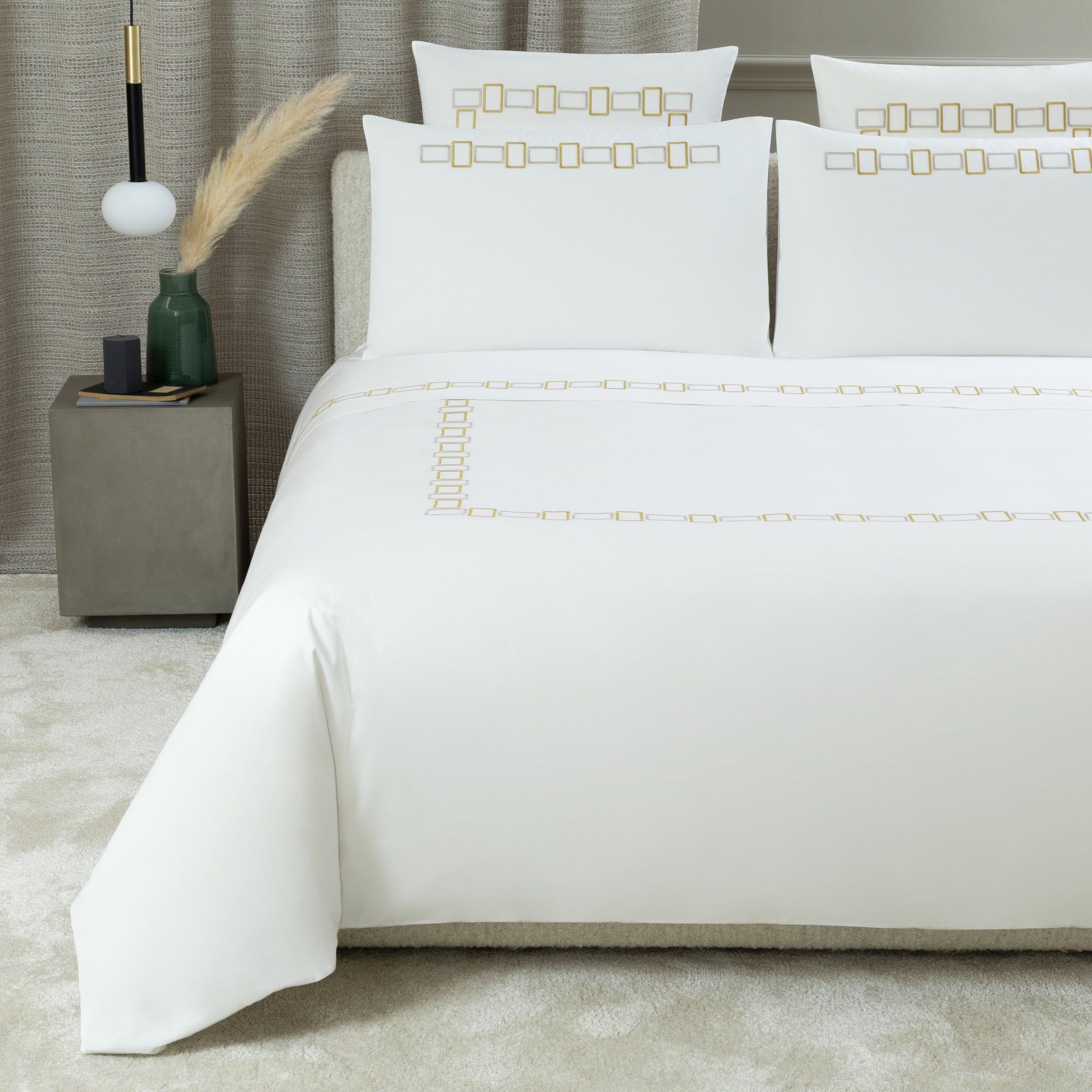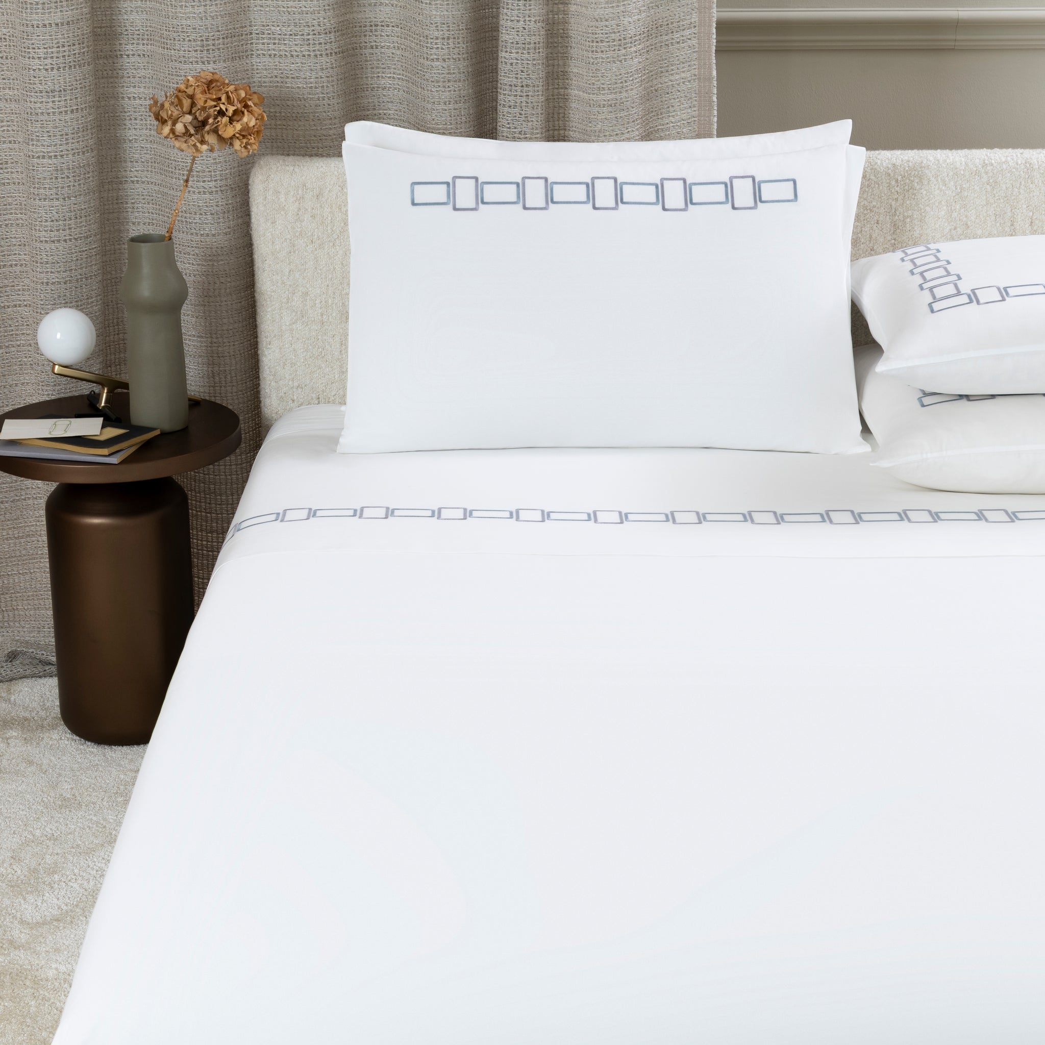 Defined by clean lines and bold contrast, the Bold Bicolor Embroidery Duvet Set by Frette brings a contemporary edge to your bedroom. Crafted from 100% pure cotton, it balances striking design with signature Italian softness.