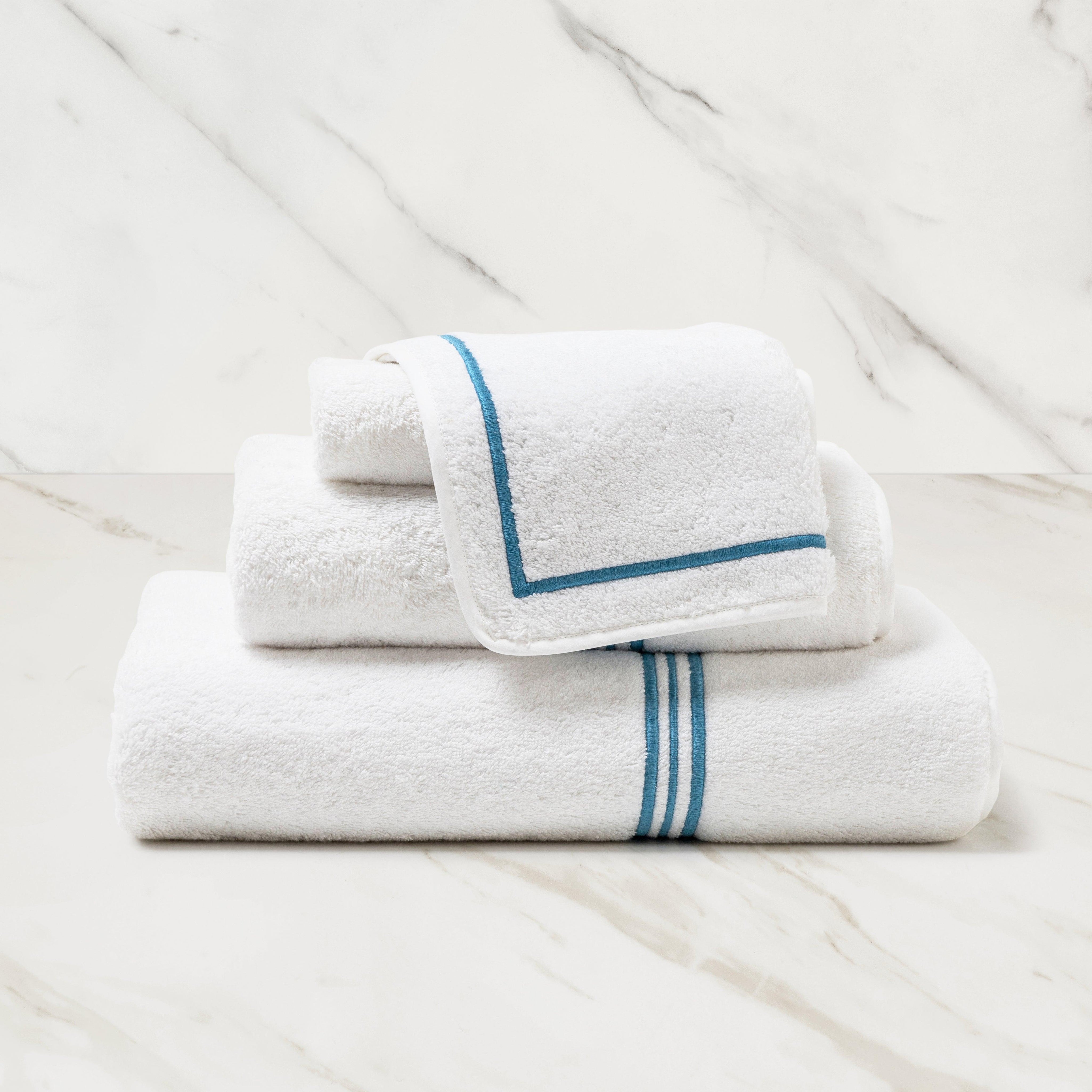 Wash cloth in terry with triple piping. Finished with matching cotton sateen bias binding.