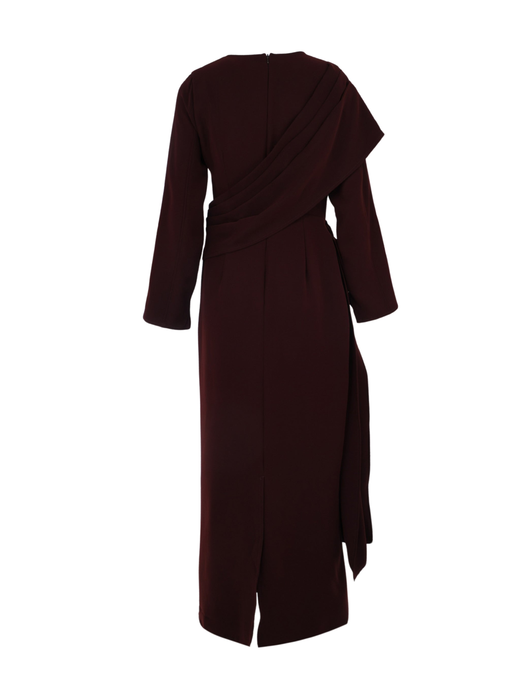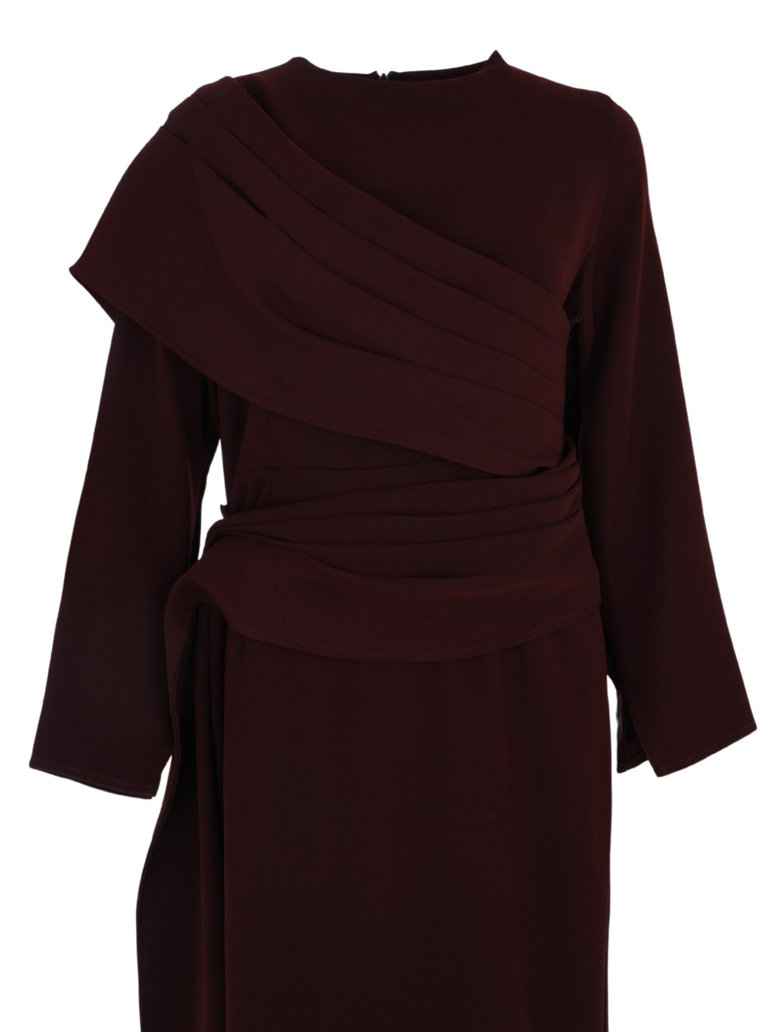 Long Sleeves Dress Strait Cut With Pleated Wrap Around Shoulder Short Wrap