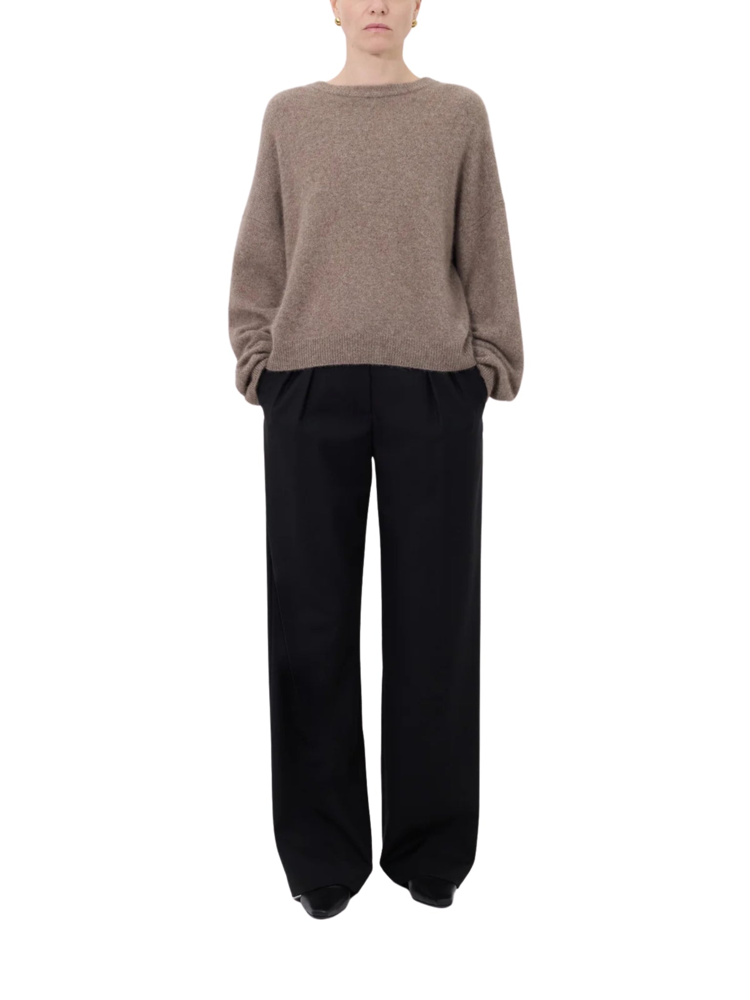 The TRISTAN Loose Fit Sweater delivers effortless comfort with refined simplicity. Made from a rich mercerized wool and yak blend, this sweater features a relaxed silhouette complemented by drop shoulders and a classic crew neckline. Thick ribbed trims at the collar, cuffs, and hem enhance the structure, making it an elevated essential for cooler days.