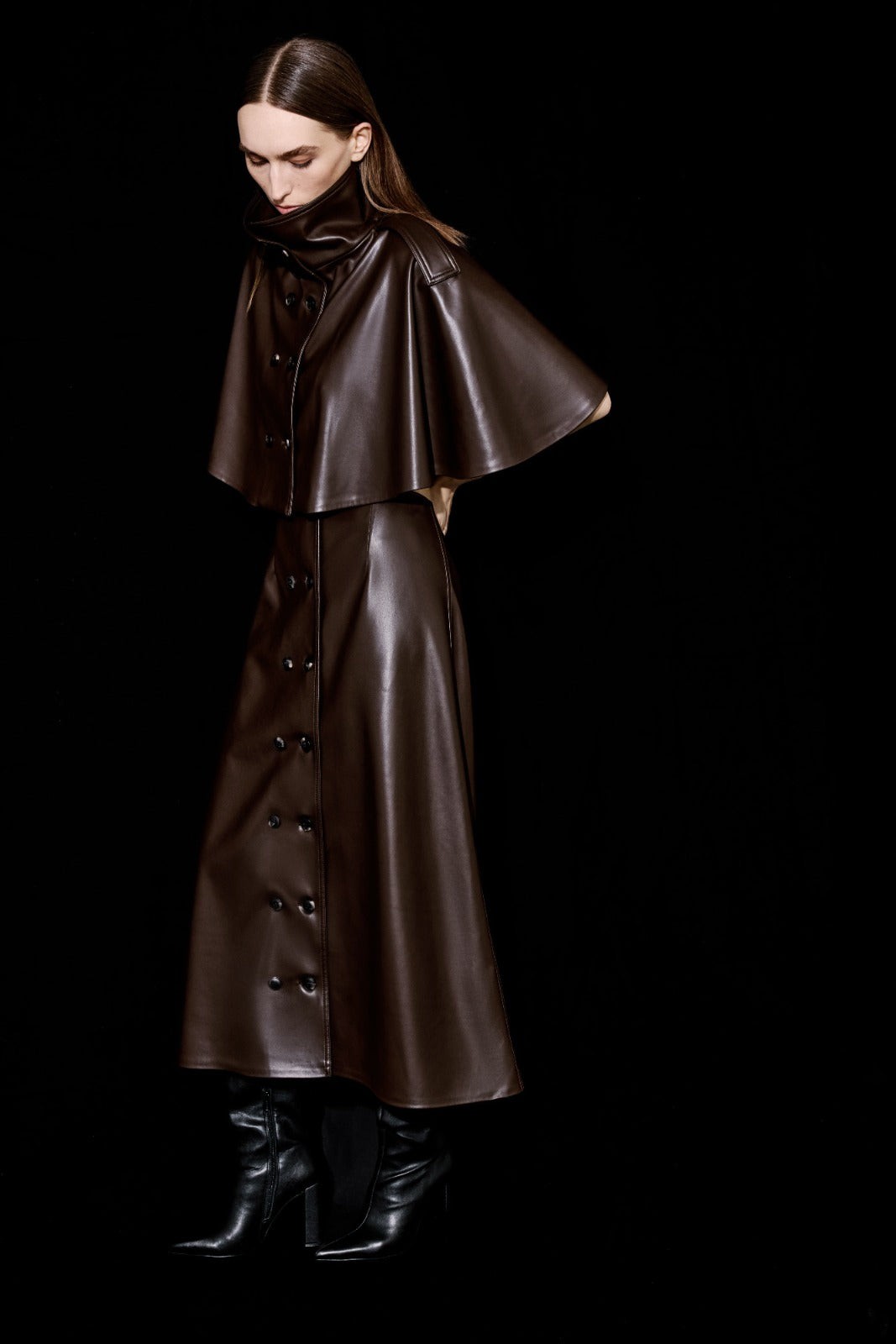 Effortlessly modern and consciously crafted, the Brown Vegan Leather Midi Skirt by Selma Cilek brings sleek sophistication to your wardrobe. Hand-sewn for the FW25/26 collection, this vegan leather skirt is a stylish statement that blends contemporary design with ethical luxury.