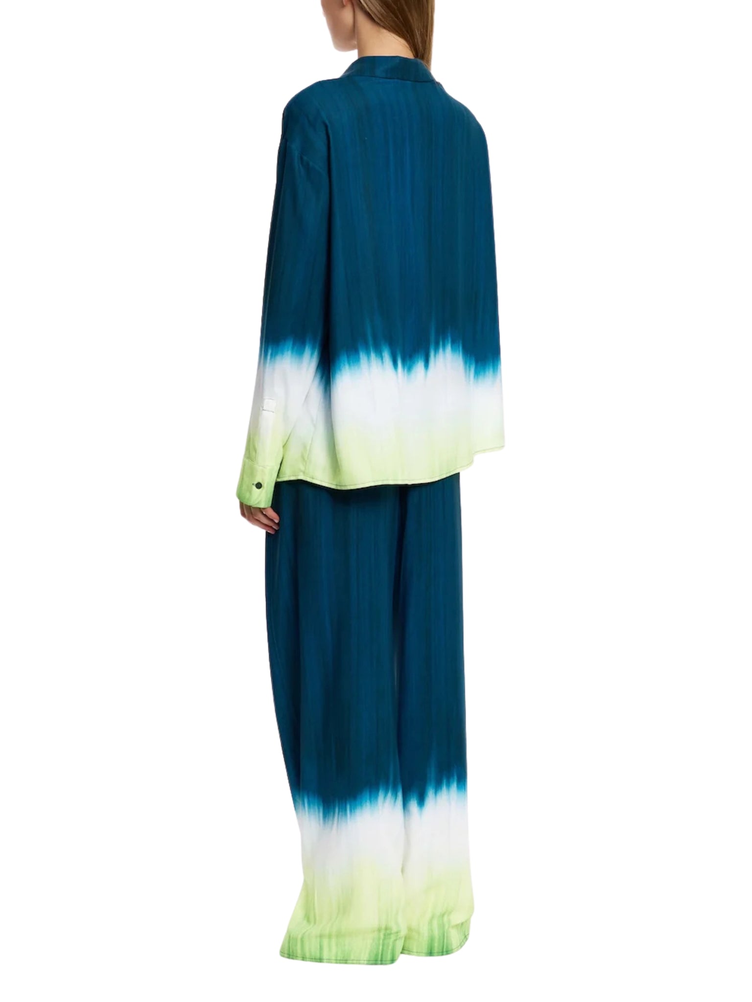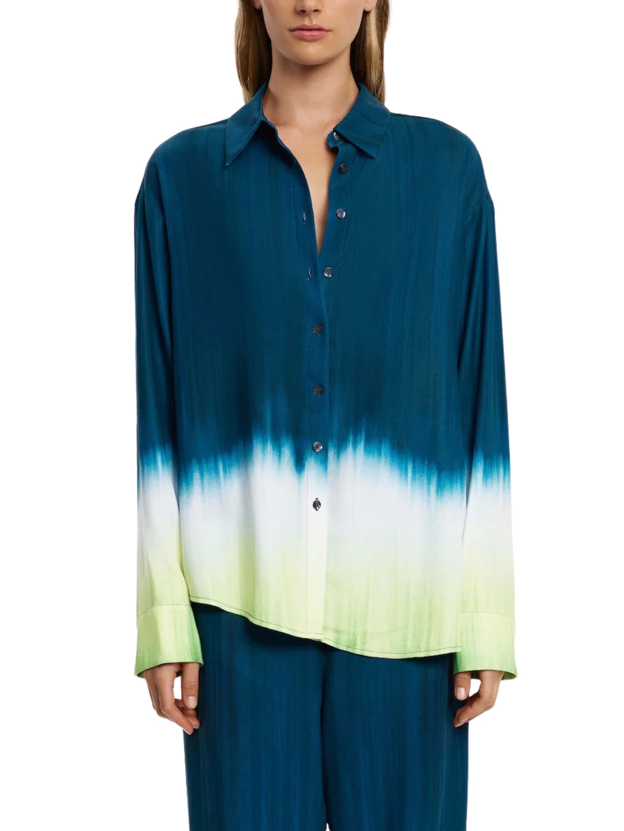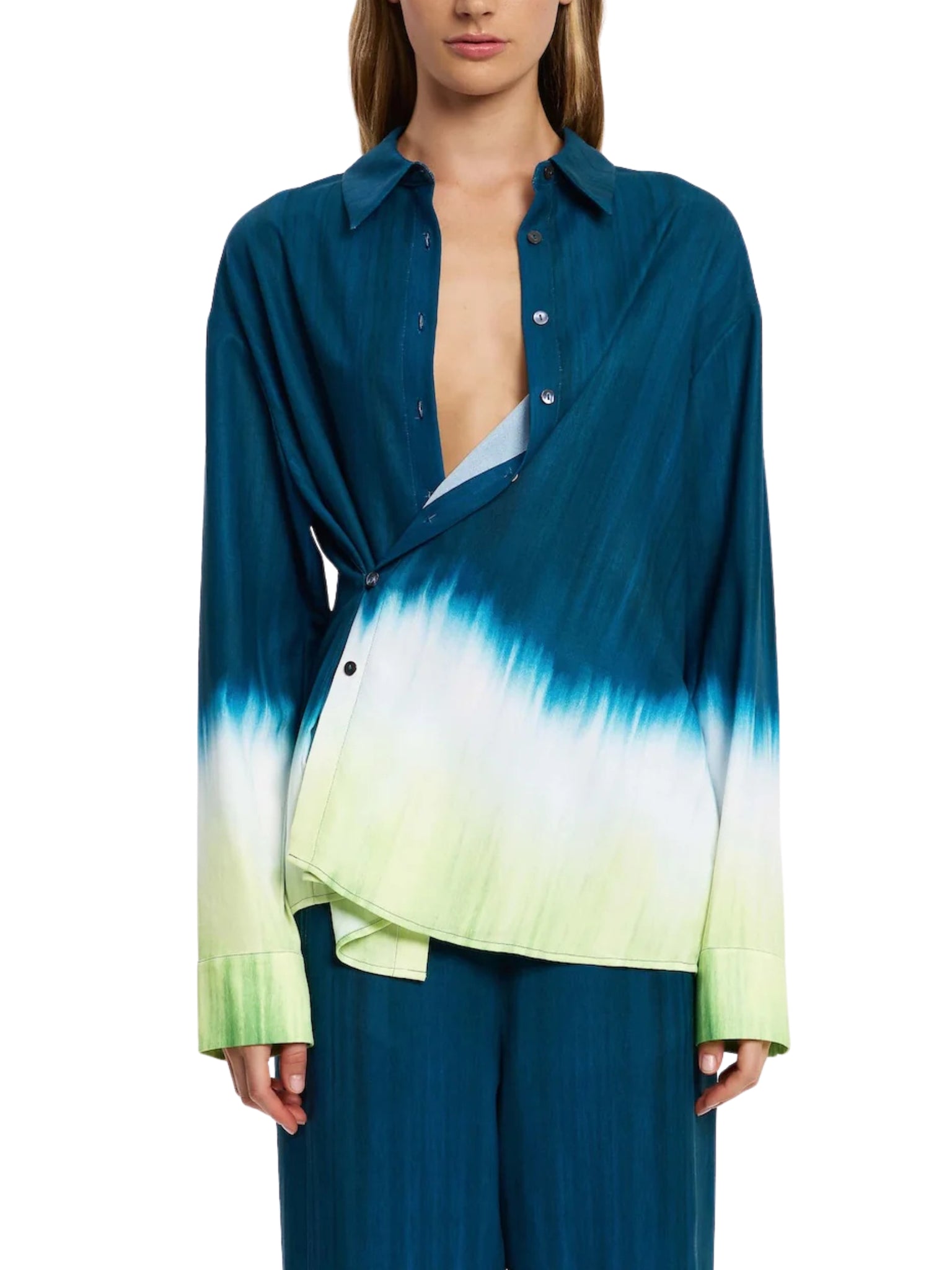 Architectural tailoring meets modern fluidity in the Vilte Shirt in Petrol Gradient. Featuring a sculptural silhouette and gradient placement print, this statement shirt elevates everyday suiting and occasion dressing, perfectly paired with the Vilte Pant for a contemporary ensemble in Saudi Arabia.