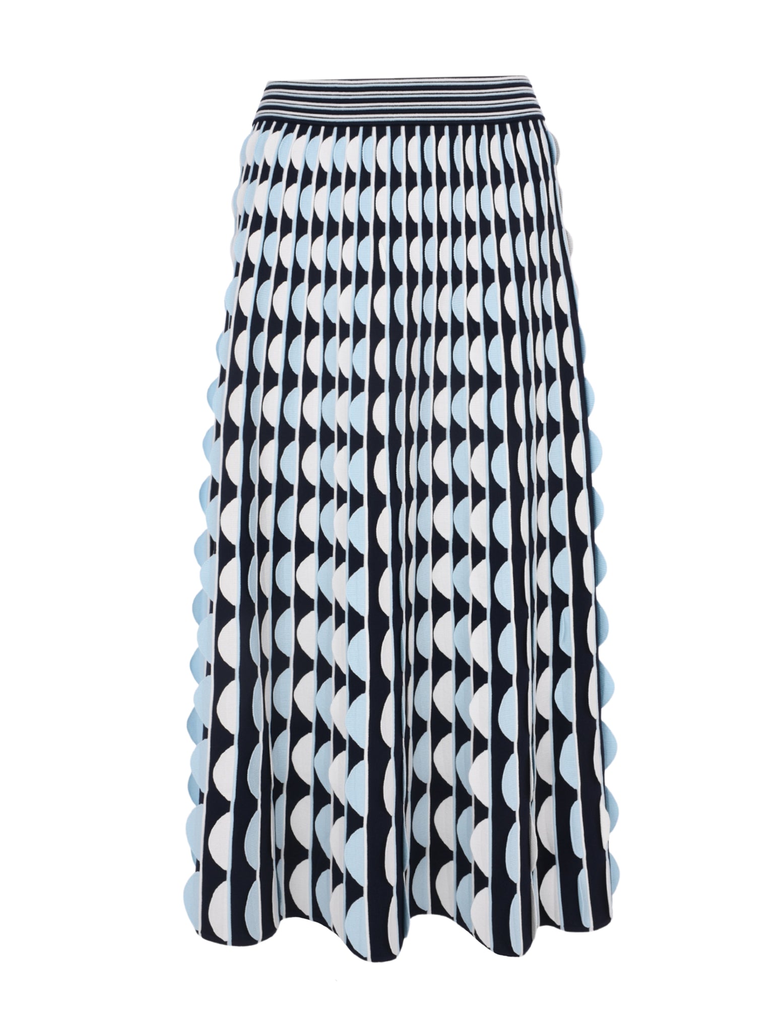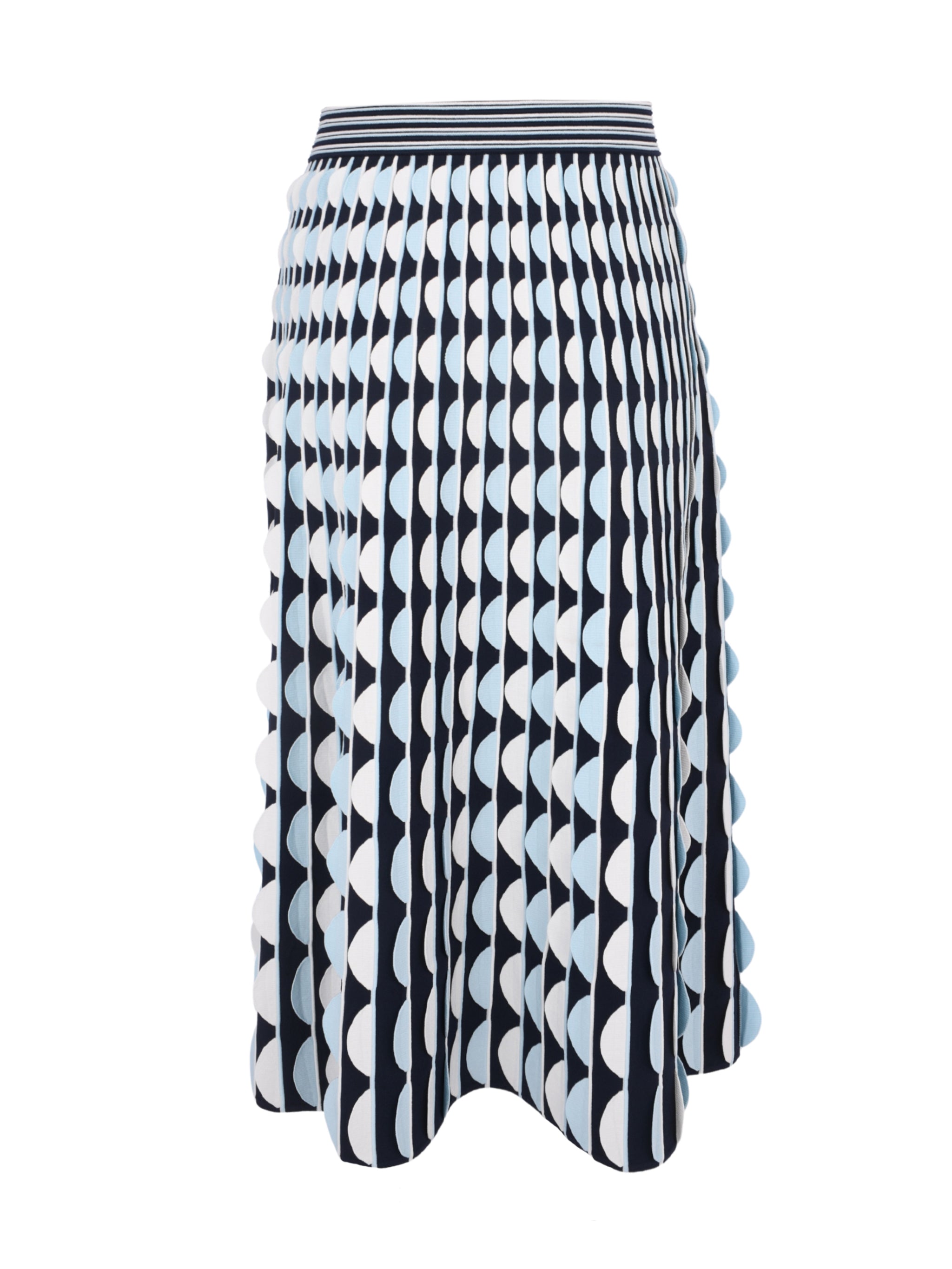Elevate your wardrobe with the Micah Midi Skirt by SIMKHAI in sky-multi. This vibrant, patterned skirt combines a playful color palette with a flattering midi length, perfect for the modern woman in Saudi Arabia seeking stylish, versatile pieces for work, casual, or special occasions.