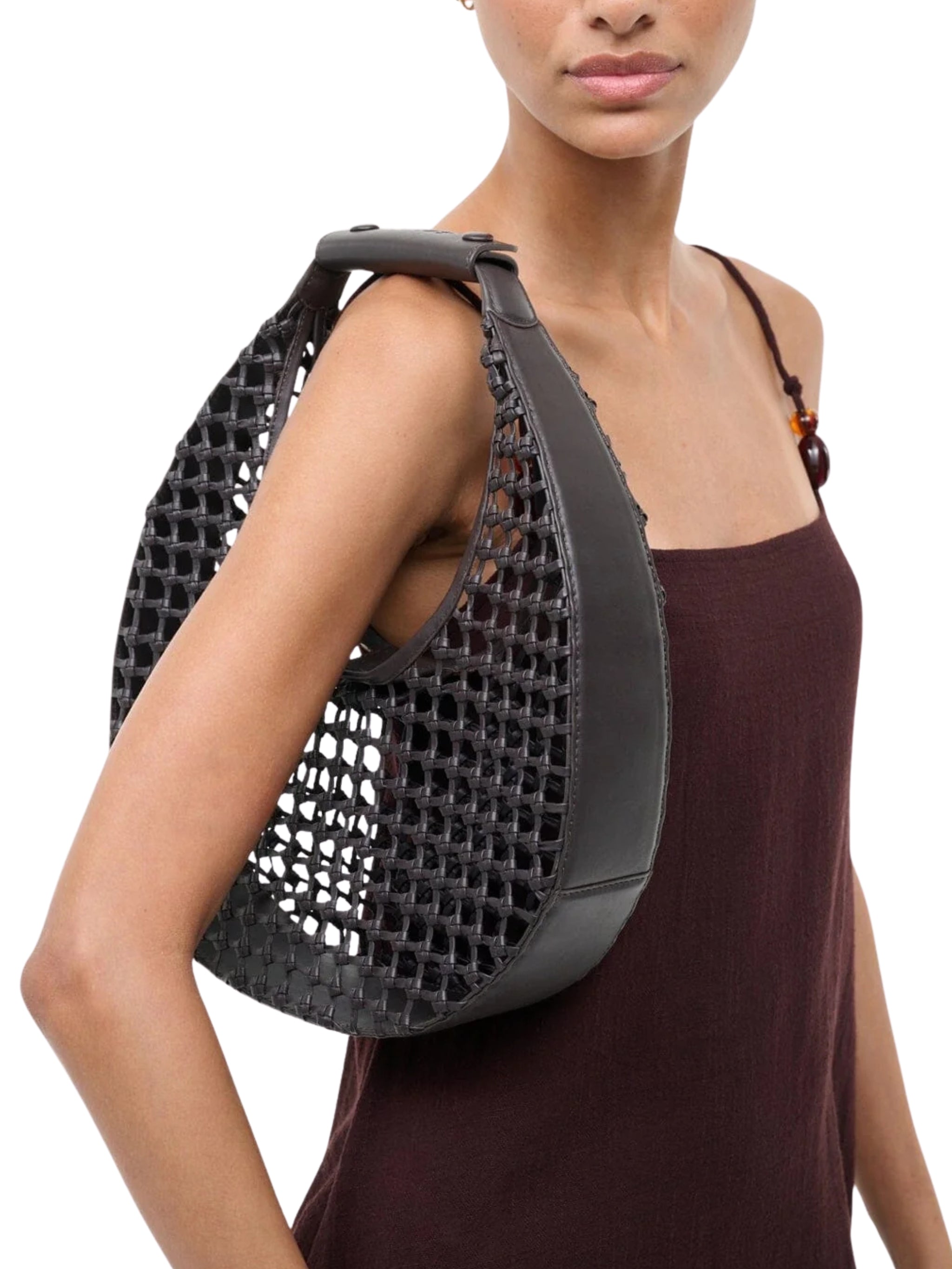 Artisan-crafted and effortlessly modern, the Moon Hand-Knotted Tote Bag from Staud combines luxury craftsmanship with contemporary design. Made from premium cow leather, the hand-knotted detailing adds a tactile, refined touch to this structured tote. Perfect for curated luxury wardrobes in Saudi Arabia, it elevates both everyday styling and designer casual ensembles.