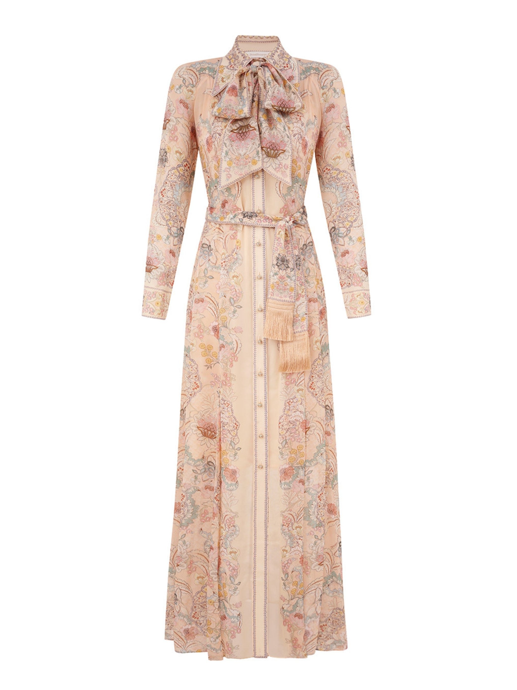 The Rebellion Pussybow Shirt Dress by Zimmermann combines timeless elegance with modern sophistication. Crafted from 100% viscose, this flowing shirt dress features a signature pussybow detail perfect for stylish women in Saudi Arabia seeking luxury day-to-evening fashion.